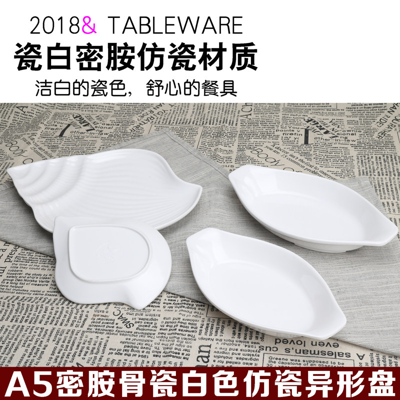 Imitation porcelain tableware barbecue white creative plate personality special-shaped irregular fall-resistant ktv snack hot pot plate plate