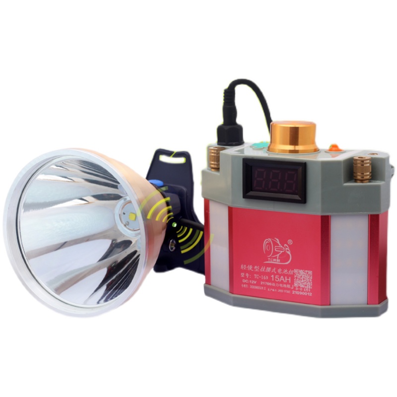 12V induction headlight 9-core high-brightness spotlight long-range external large-capacity two-piece power supply with side light voltage display