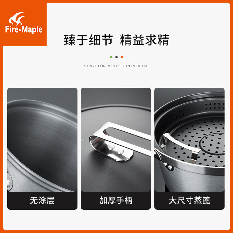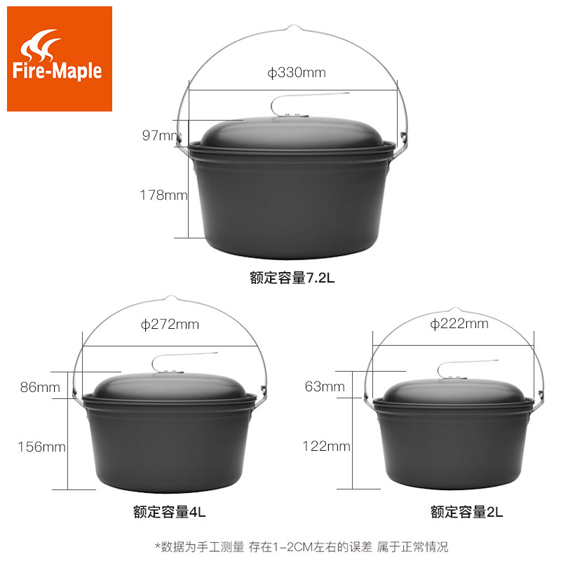 Fire maple outdoor camping steamer 2-8L aluminum alloy large soup pot self-driving camping stew pot hanging pot cooking pot bonfire pot