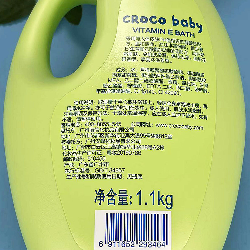 Crocodile baby body lotion 1100g large bottle of Vie E fruit sour milk 100 flowers scented green apple mild formula nourishing and nourishing