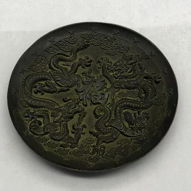 Antique miscellaneous plate Two Longfu dish dish tray insulation pad home decoration retro copper