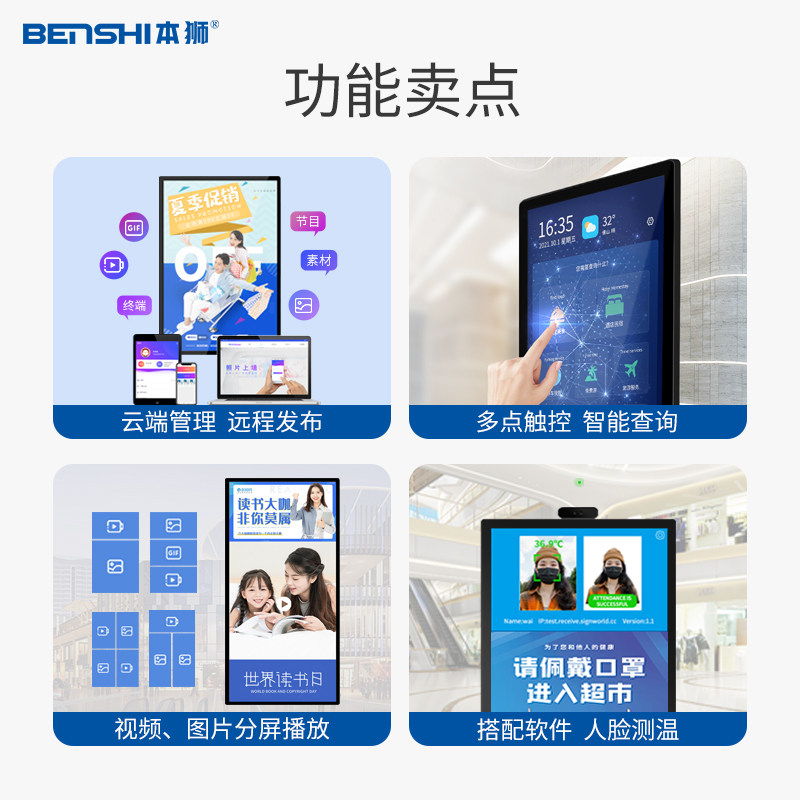 Benshi 65 85 32-inch wall-mounted advertising machine large-size touch intelligent high-definition advertising screen milk tea shop catering multimedia network display