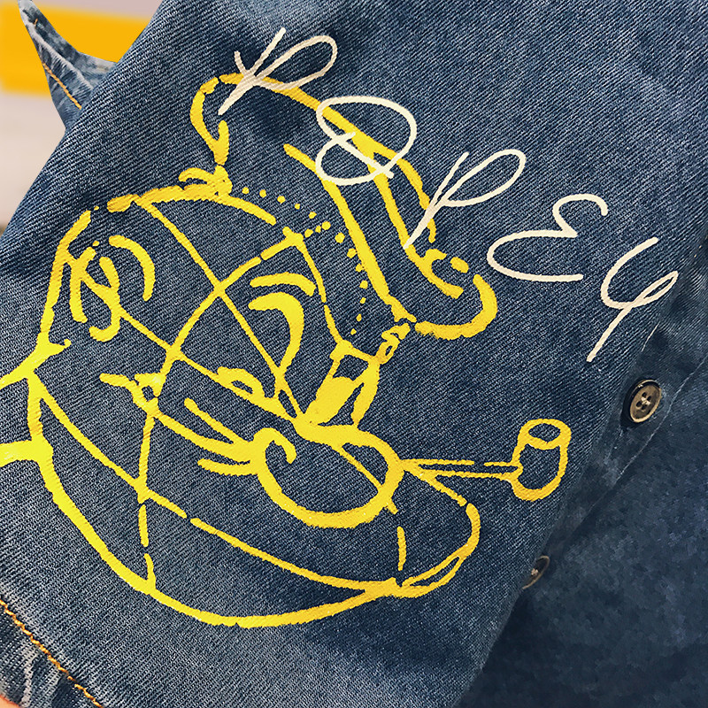 Vigorous sailor POPEYE child denim shirt 2022 baby spring dress new female boy long sleeve shirt tide