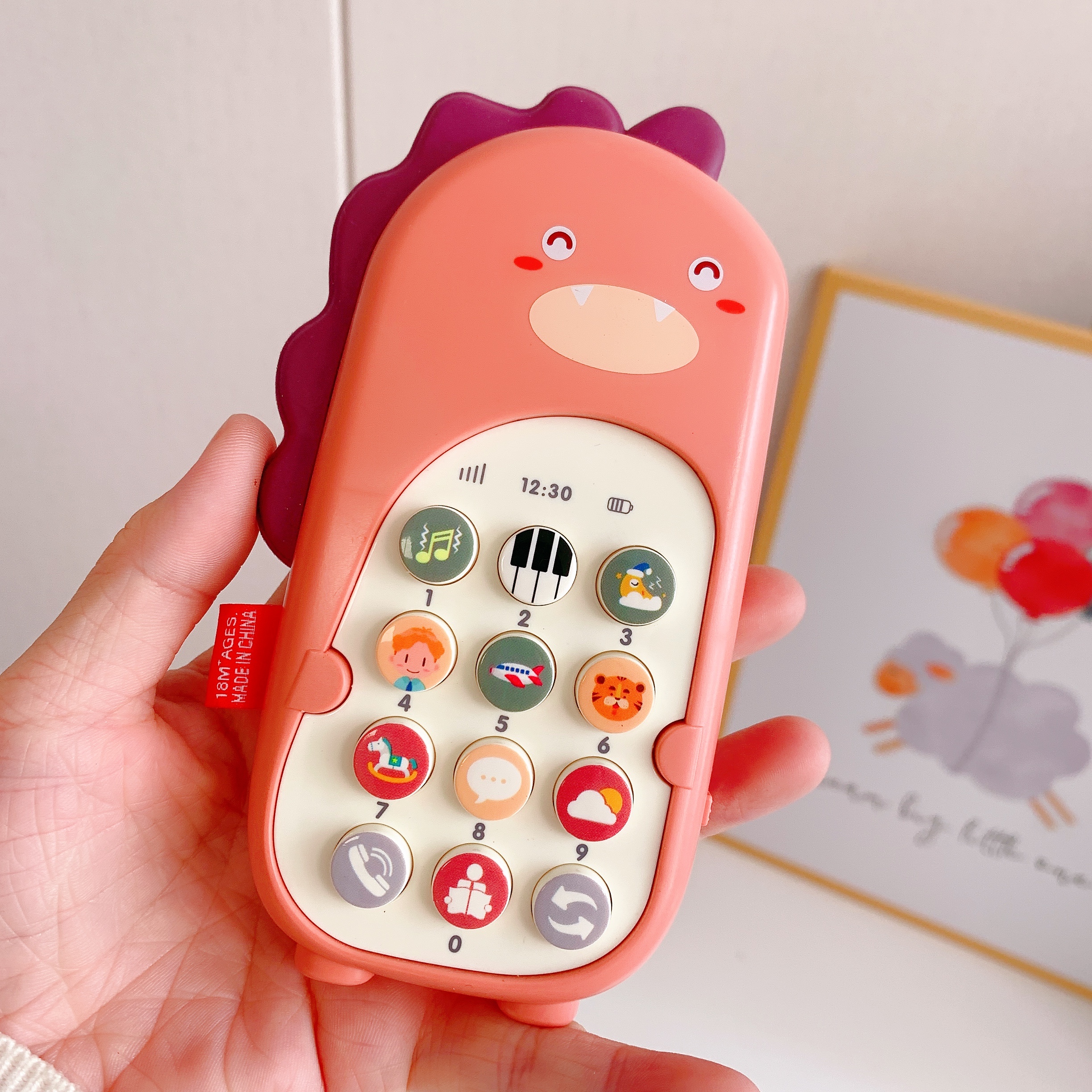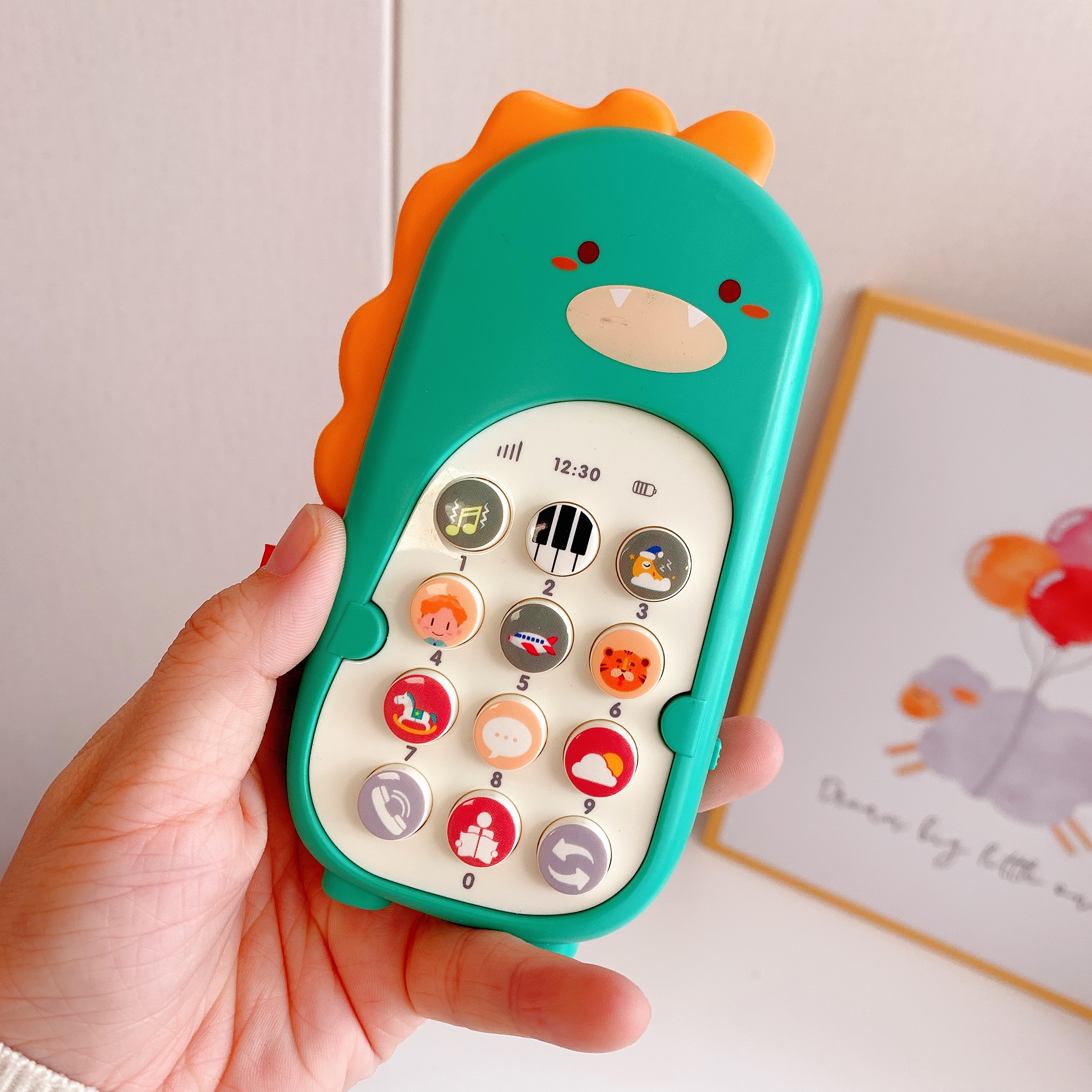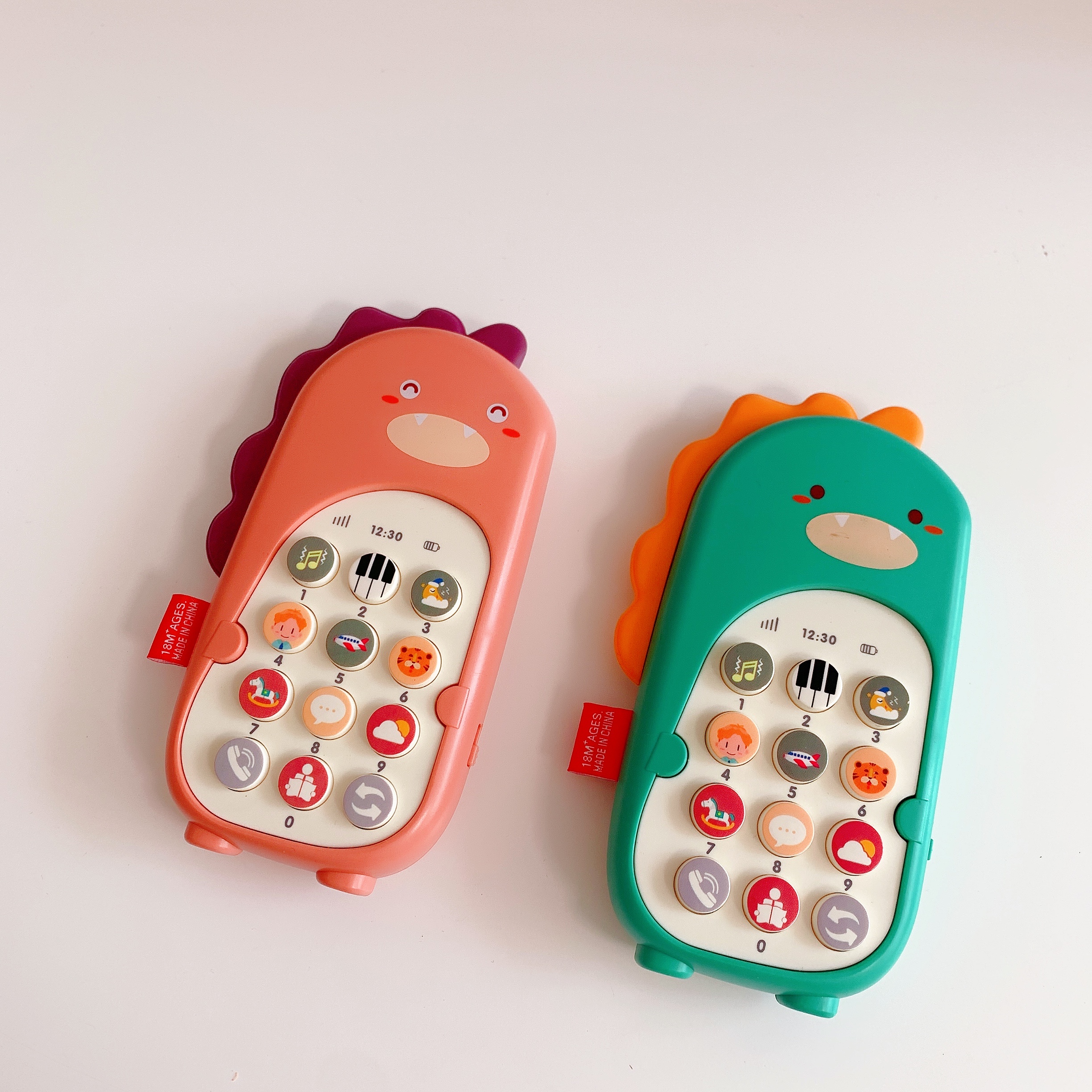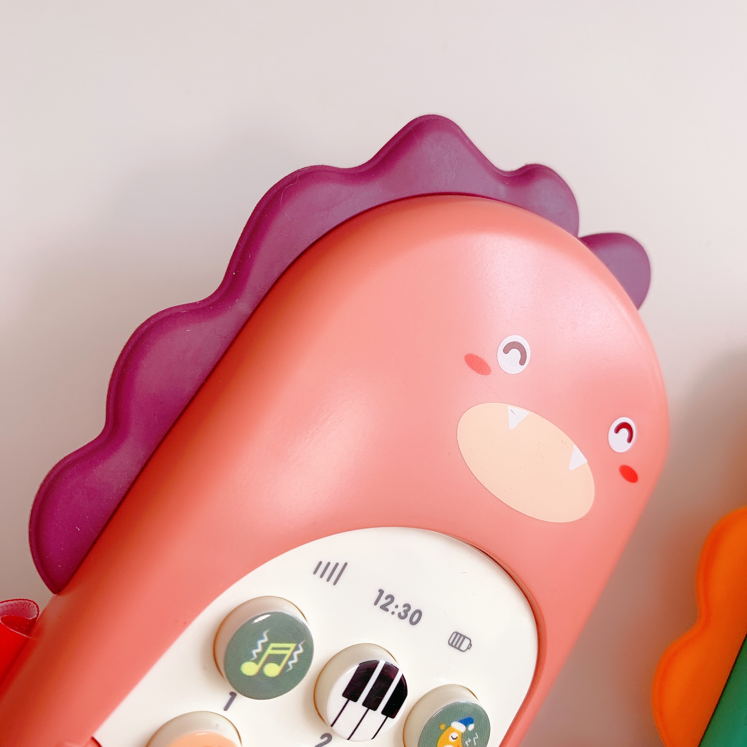 Baby Fun Little Dinosaur Music Early Teach Emulation Mobile Phone Children Bilingual With Shake Can Nibble Phone Toy