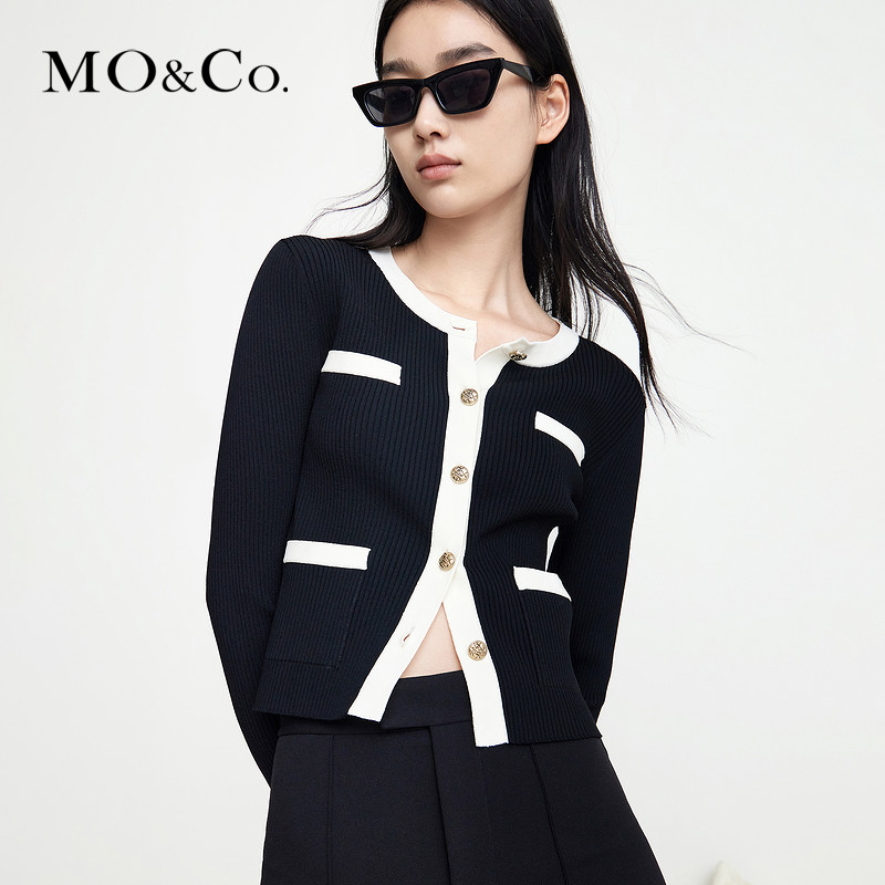 MOCO Spring New Metal Closed Color Repair Short Knitted Shirt Knitting Short Metal Knitting in Spring