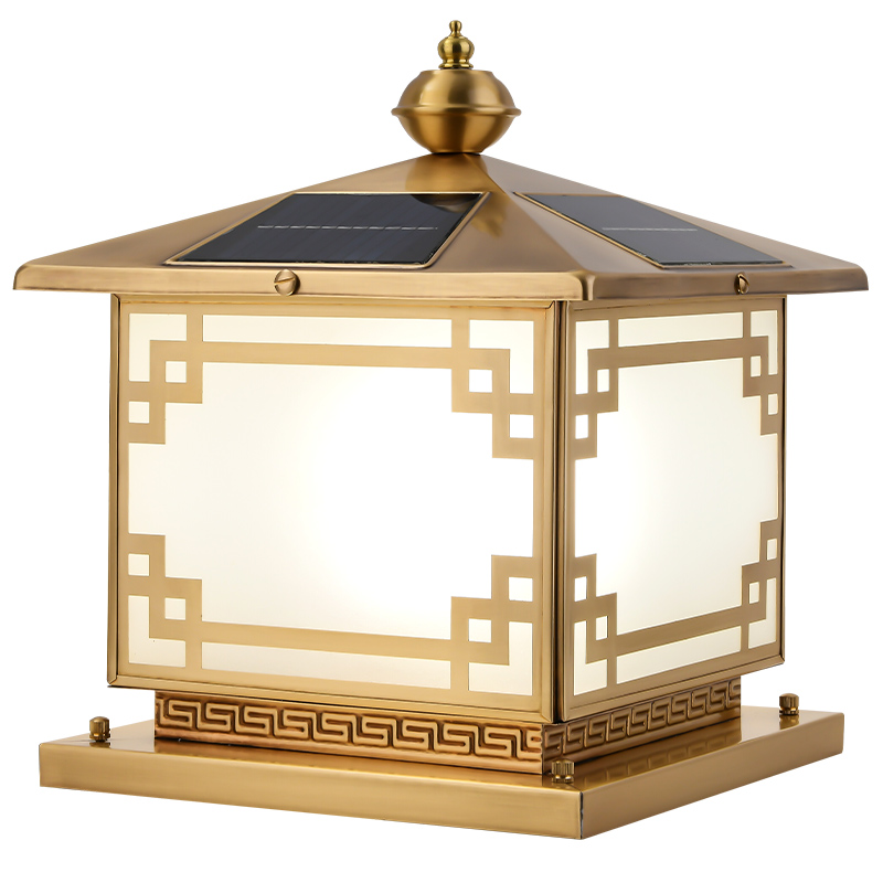 Total Copper Solar Wall Villa column headlights Outdoor waterproof to pick up the Chinese square courtyard lamp pillar lamp