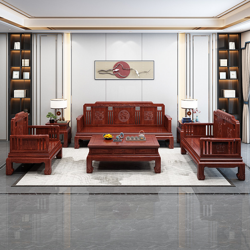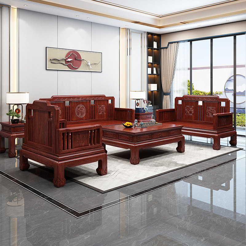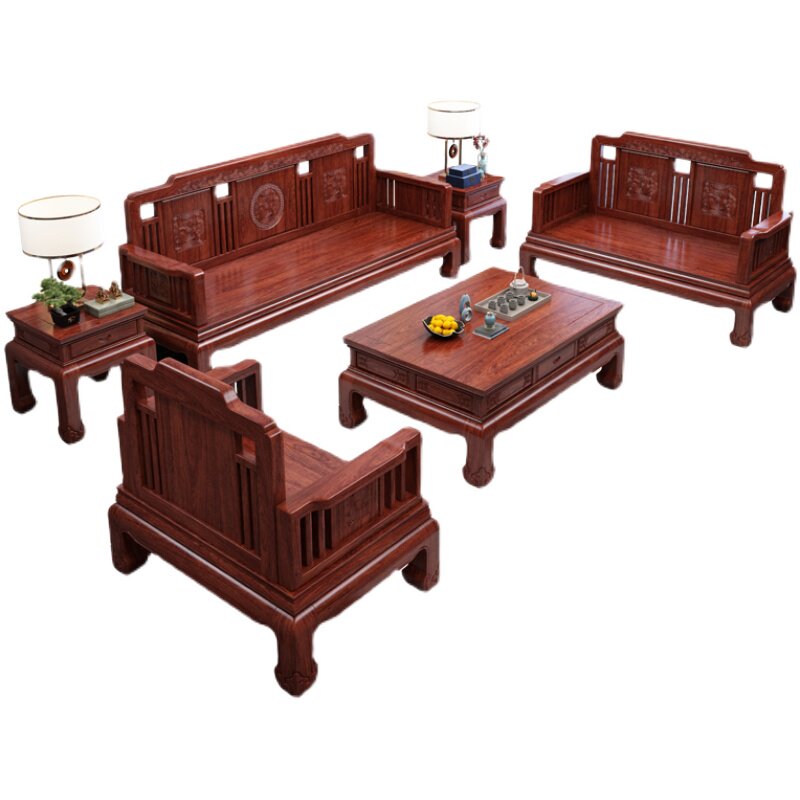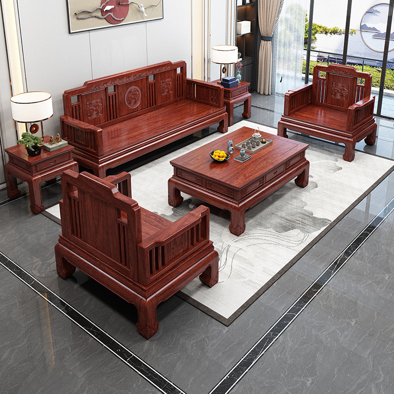 Gold Flowers Pear Wood Solid Wood Sofa Winter Summer Dual Purpose Modern New Chinese Living Room Small Household Type Red Wood Carved Flower Furniture Complete-Taobao