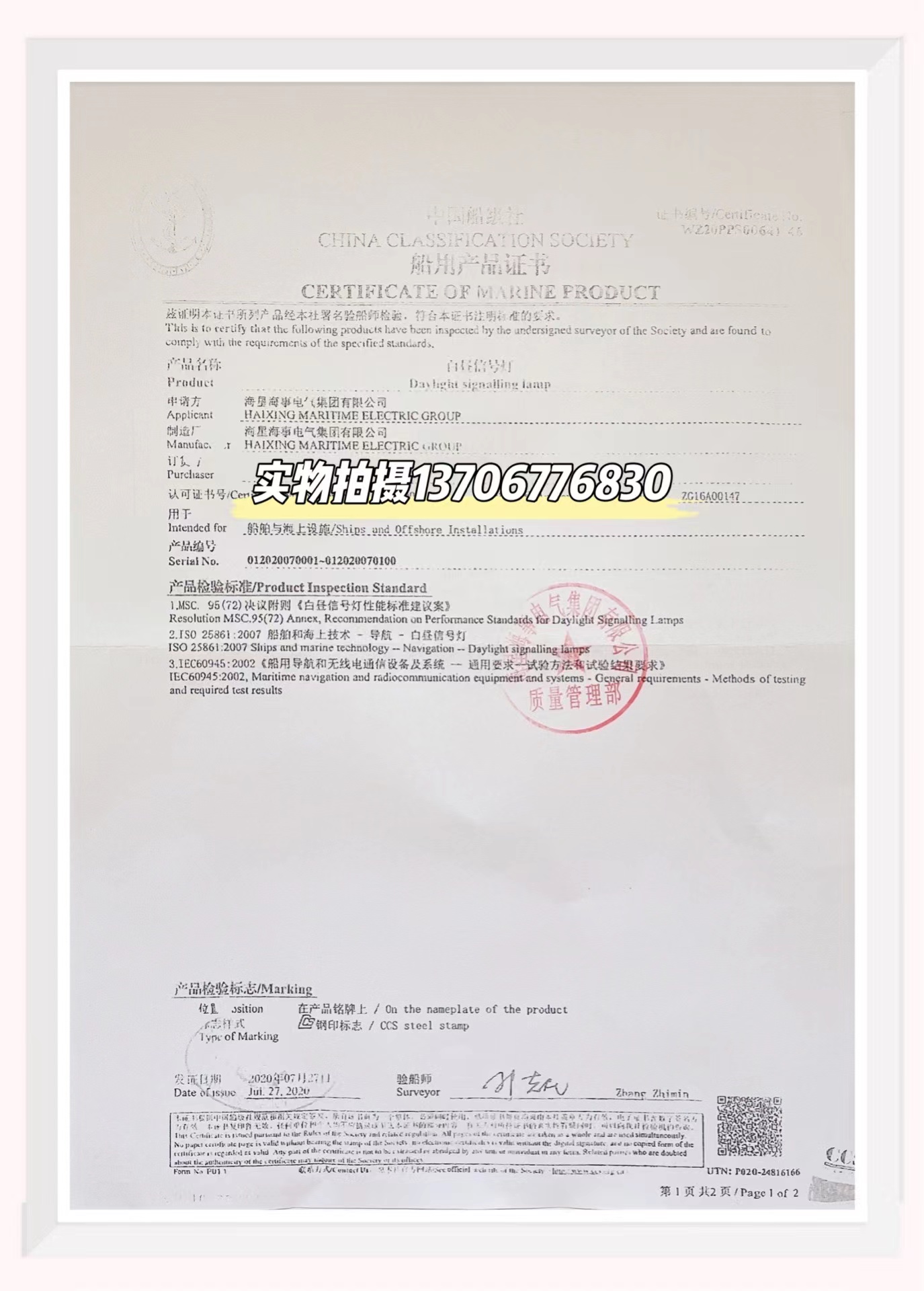 Marine white daylight signal lamp handheld CXD8 charger storage battery Contact light CCS certificate Heisei Ark 24V