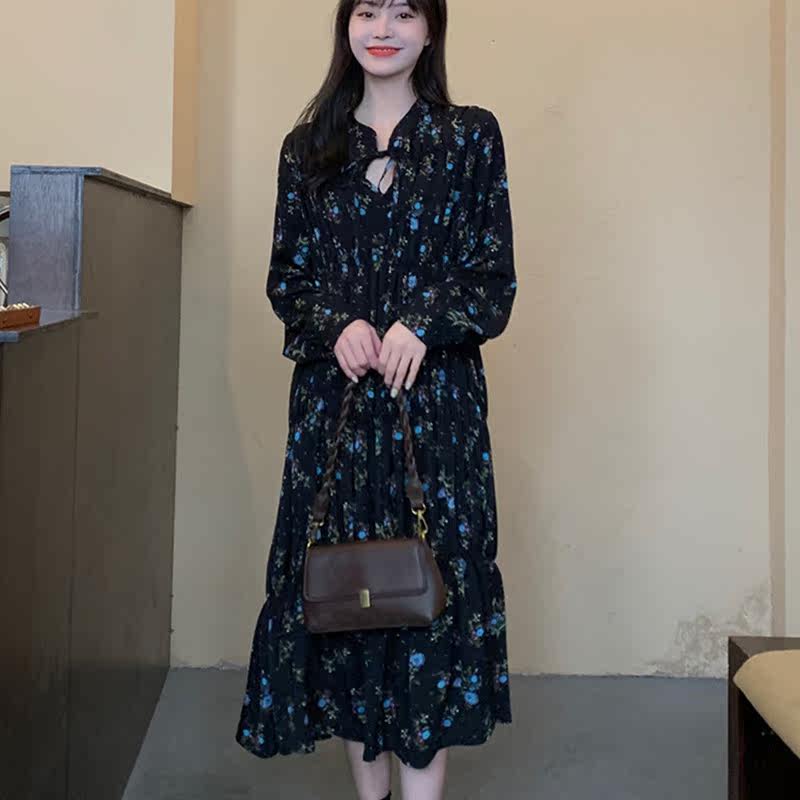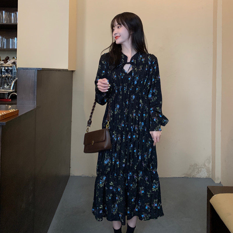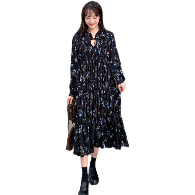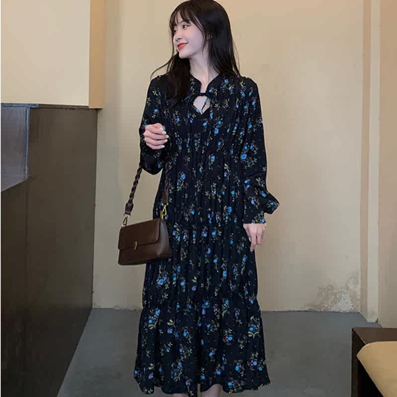 Gfei steps up the code gestation maternity dress Spring installation Korean version with long version of crushed flowers foreign dress Long sleeves 200 catty long dress