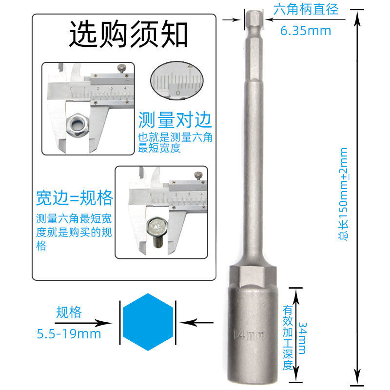Lengthened DEEPEN PNEUMATIC SCREWDRIVER SLEEVE HEAD SUIT 8mm ELECTRIC DRILL SLEEVE HEAD 6 HEXAGON ELECTRIC SCREW DRIVER NUT WRENCH