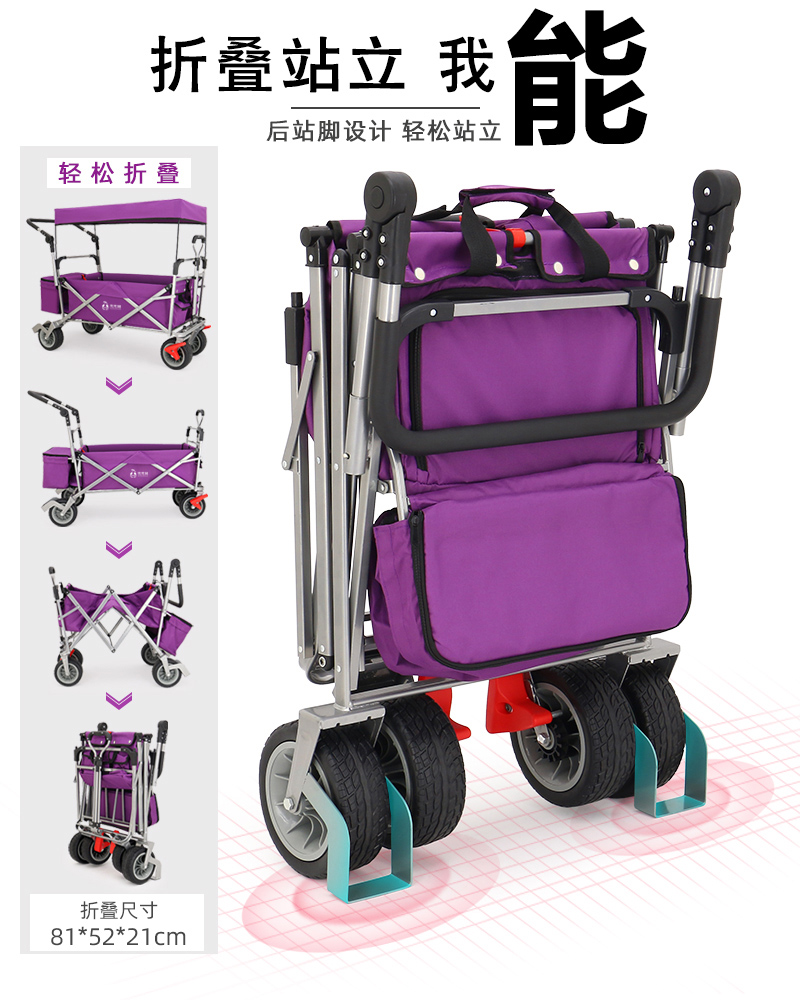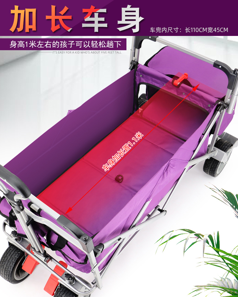 Lengthened children's folding camping trolley outdoor camping picnic trolley amusement park with two baby portable trolley