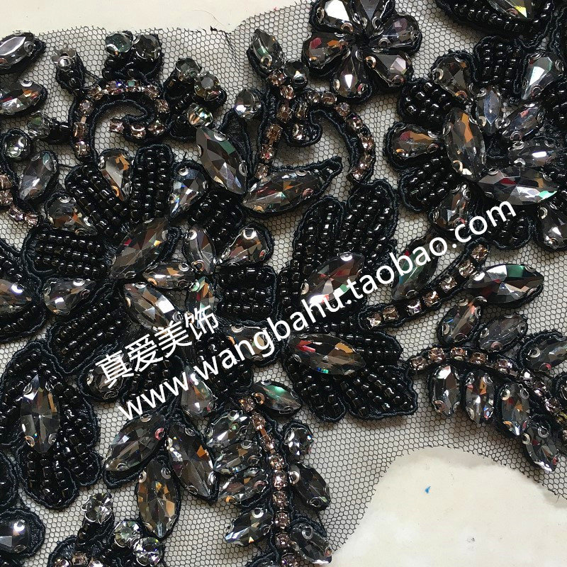 Grey glass drill heavy industry beaded flower decoration DIY cheongsam jacket dress decoration embroidery bead flower costume decoration