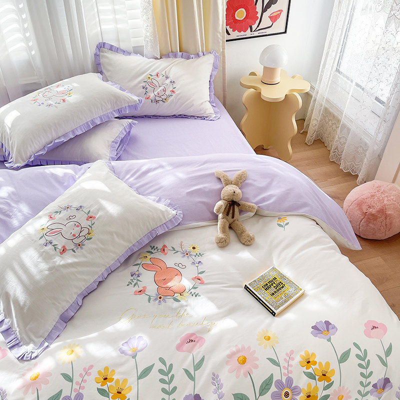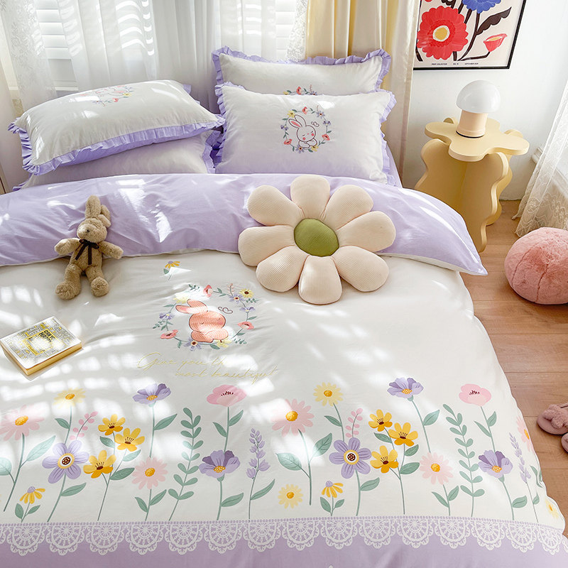 Korean-style bed sheet four-piece set bed cover ins princess style quilt cover four-piece set cotton pure cotton four seasons universal