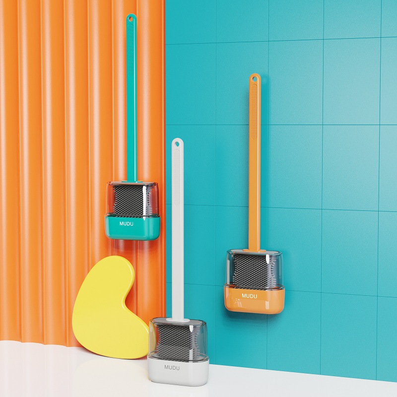 Toilet Brush No Dead Angle Home Free Punch Wash Toilet Brush Wall-mounted Makeup Room Long Handle Silicone Brush Suit God