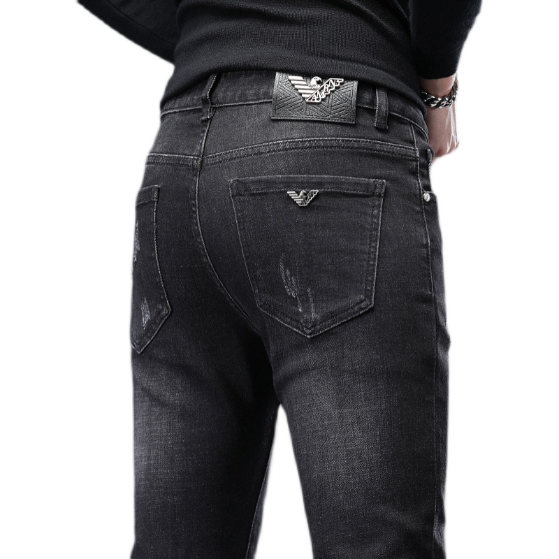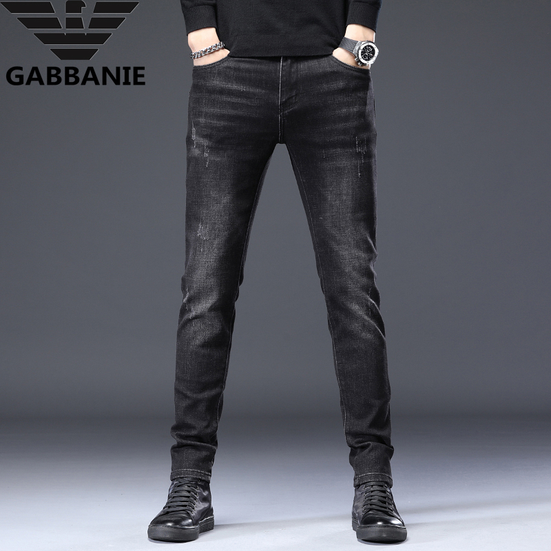 High-end Chiamanian jeans Men's elastic body small feet Summer thin Tide Cards Black Casual Pants