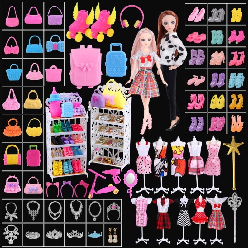 68 sets of shoe bag accessories storage box, shoe rack, 1 doll, 10 skirts, 108 suits, shoe rack storage box (no doll), 2 fashion dolls, 88 sets, 1 model rack, 78 shoe bag accessories skirt collection
