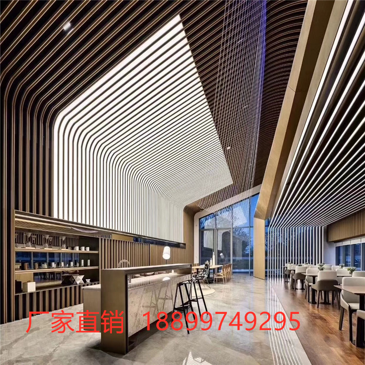 Aluminum alloy custom wood grain ceiling ceiling grid U-groove alloy pull-bend arc-shaped partition square tube source manufacturer