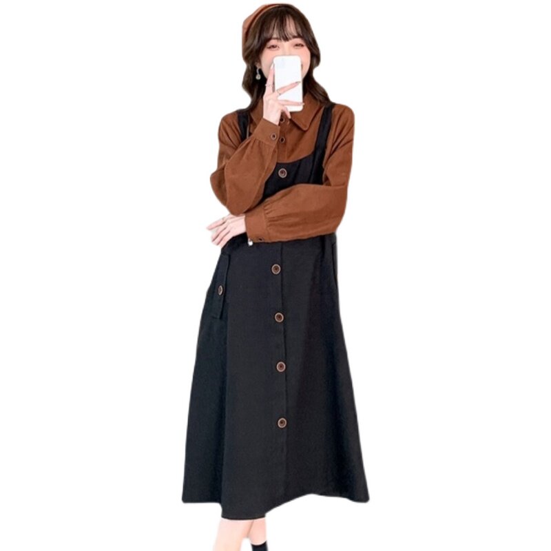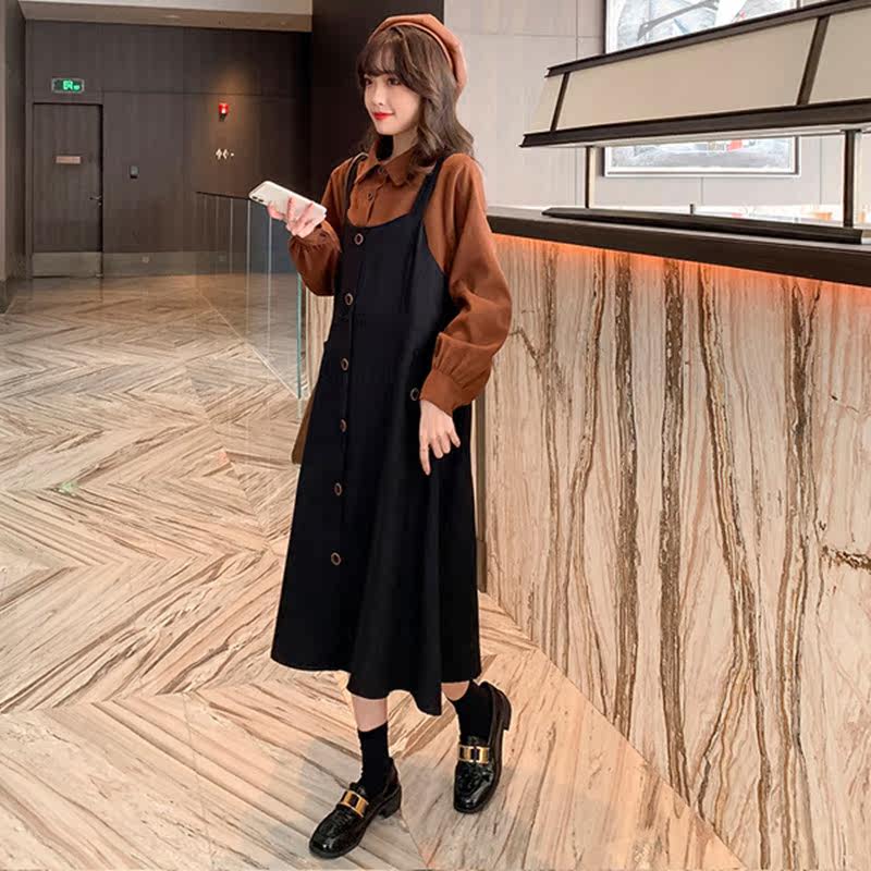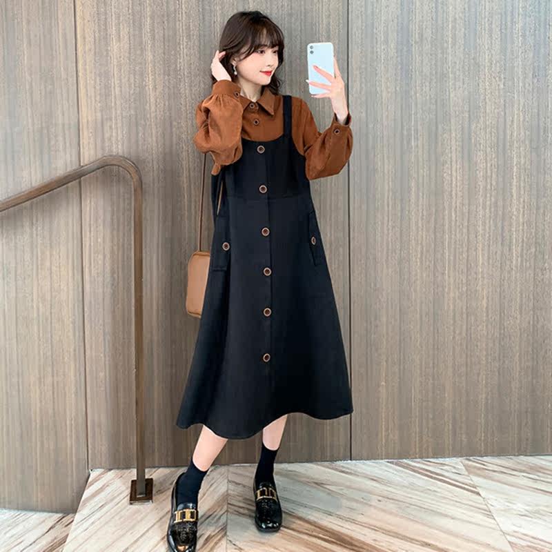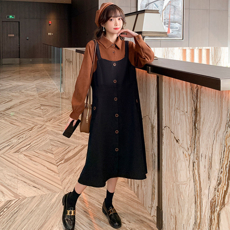 Pregnancy Woman Dress Spring Dress New Korean Version of the Long Edition Fake Two Foreign Dress Large Size Loose and Thin Splicing Long Skirt Tide
