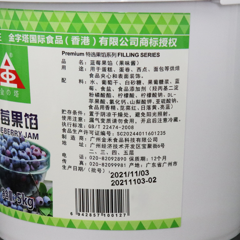 Pyramid blueberry fruit filling 5kg cake sandwich fruit jam commercial baking West point bread surface decoration