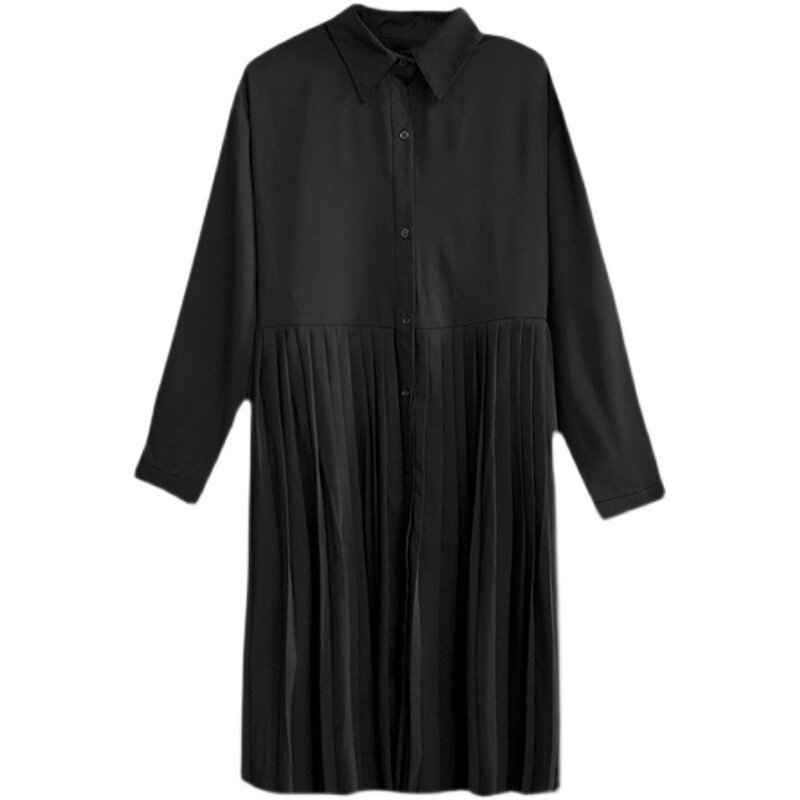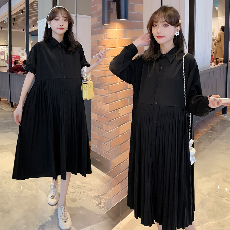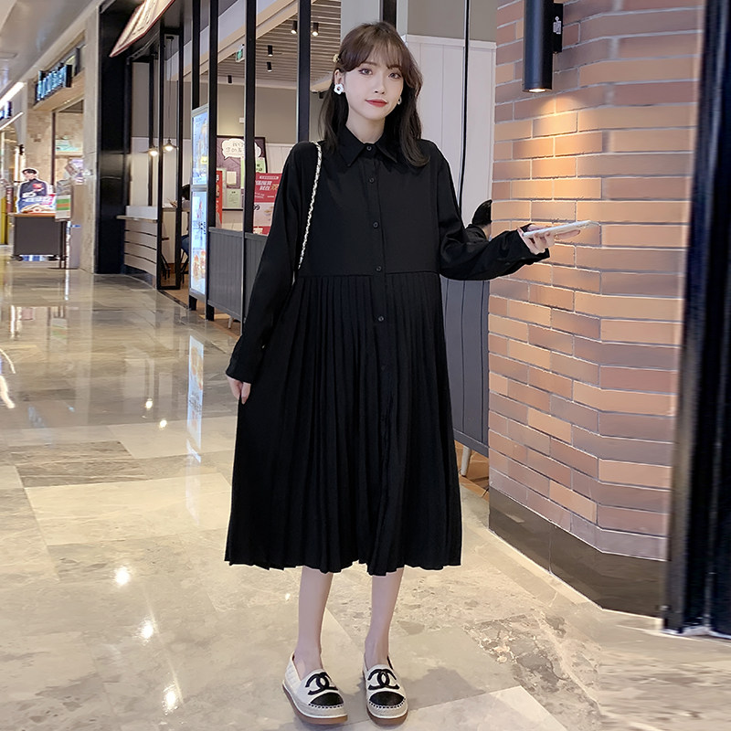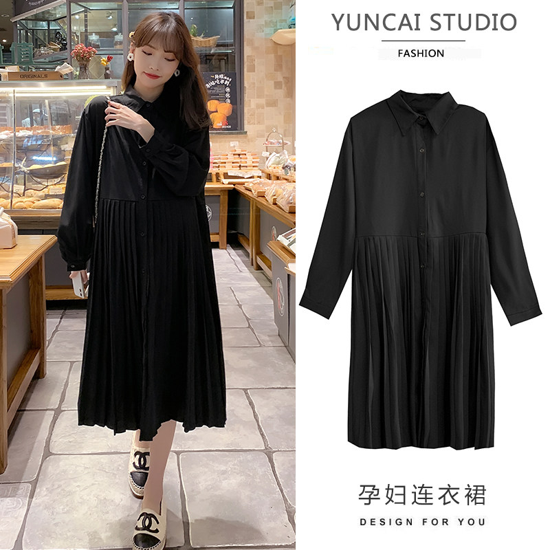 Pregnancy Woman Dress Spring Clothing in Korean version Long version of dress Large size Sizes Loose slim Long sleeves Shirt skirt 100 pleated bottom skirt