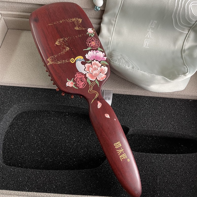 Tan Carpenter High-end Small Leaf Purple Sandalwood Weight Red Wood Green Feather Hair Care Air Cushion Comb Sandalwood Business Gifts Elders