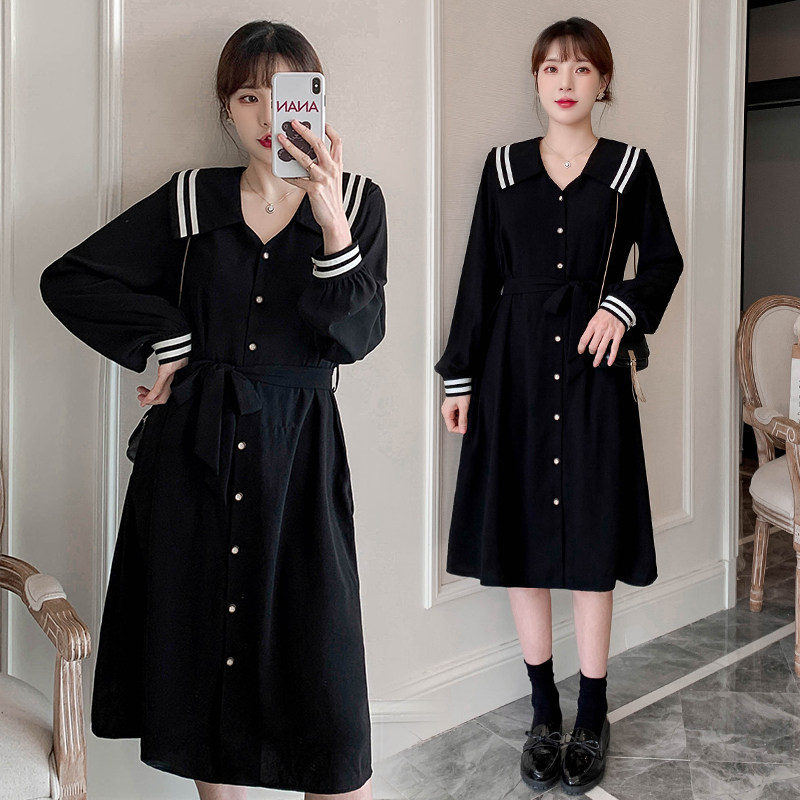 Gfei steps up the code gestation maternity dress Spring loaded with new Korean version Long version Long sleeves foreign dress 200 catty of fat mm Skirt Tide