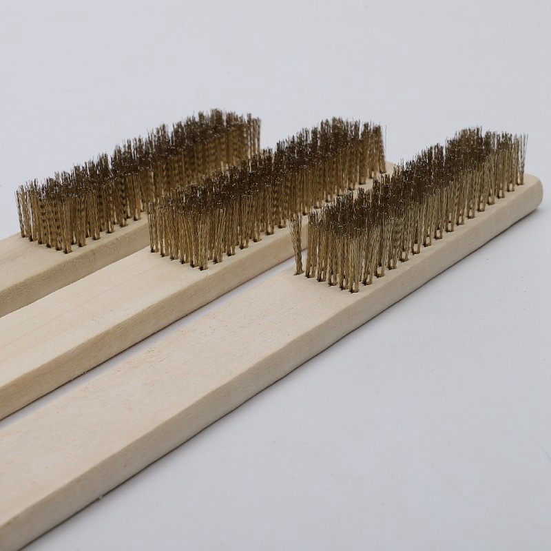 Manual Cleaning Brush Copper Plated Steel Wire Brushed Walnut Polished Rust Removal Iron Hair Wood Handle Wire Brush Home Trumpet Decontamination