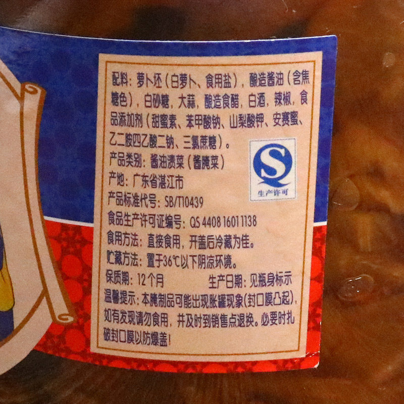 Luo Bu blank (white Luo Bu edible salt) brewing soy sauce (including caramel color) white granulated sugar garlic brewing vinegar liquor chili food additive (sodium cyclamate benzoate potassium sorbate acesulfame sucralose B