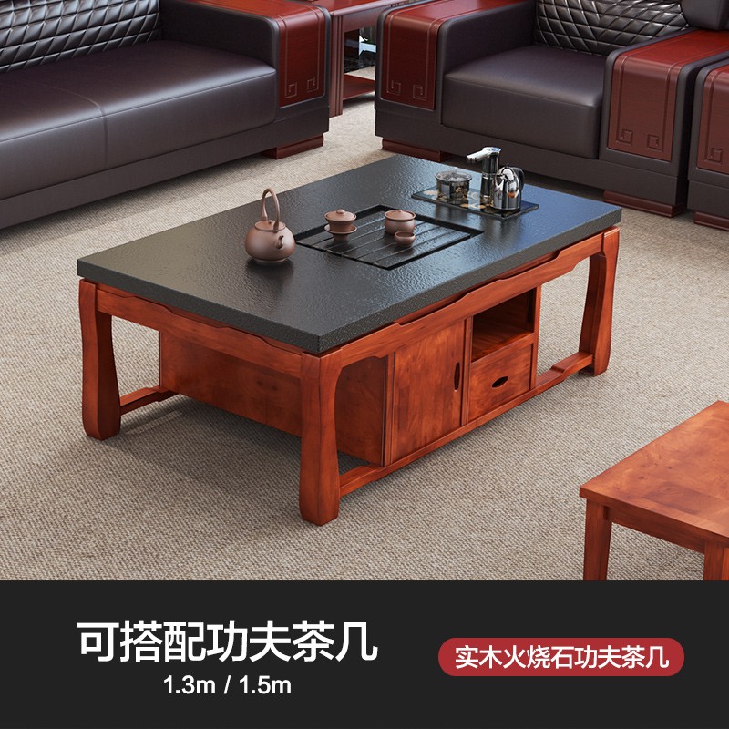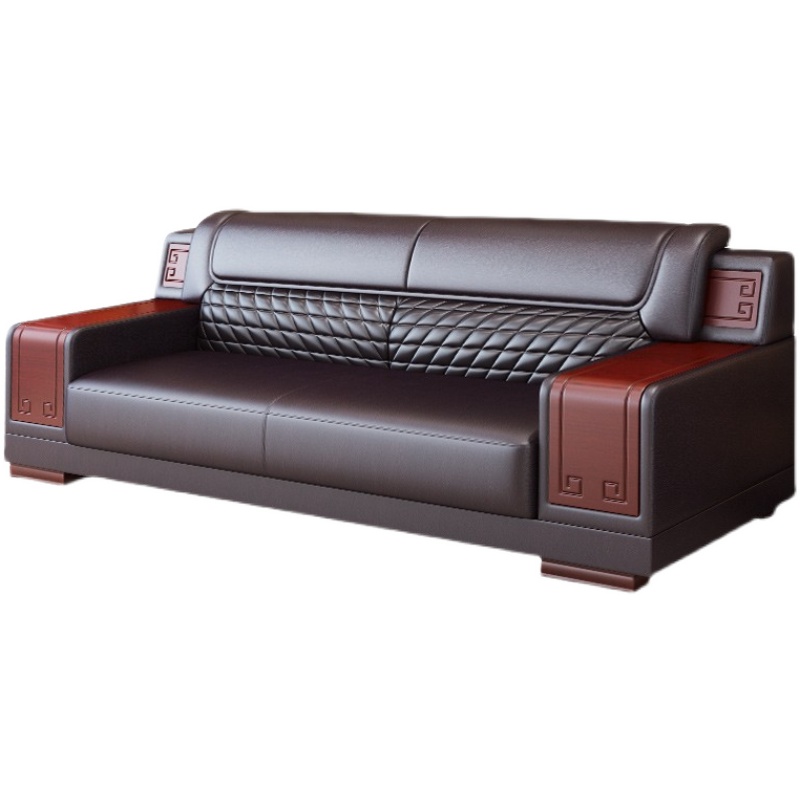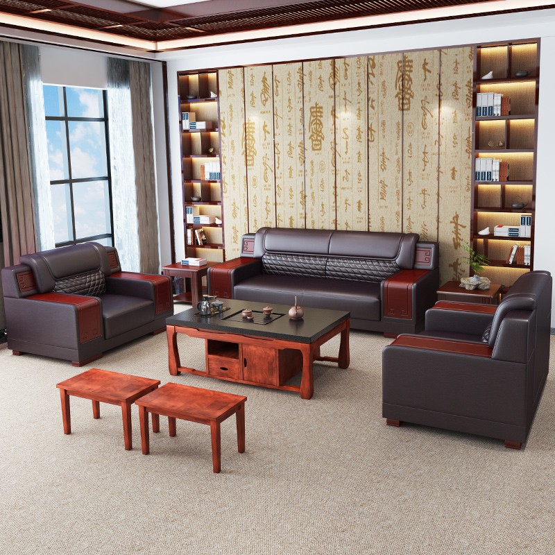 First layer cowhide office sofa coffee table combination business reception new Chinese leather solid wood leather art office furniture