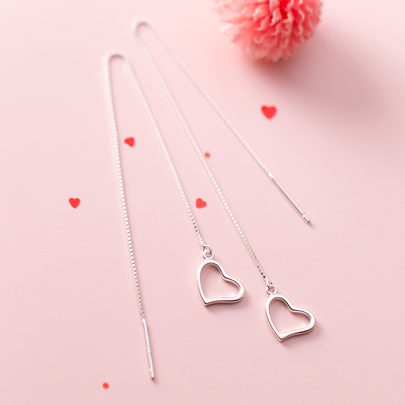 S925 pure silver ear necklace with female fashion ladies personality hollowed-out loving art sweet and simple temperament Japan-Japan-style ear decoration