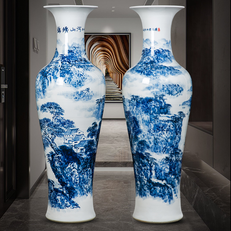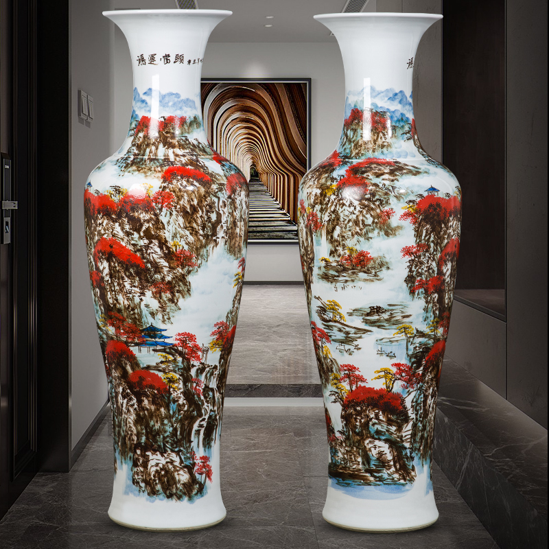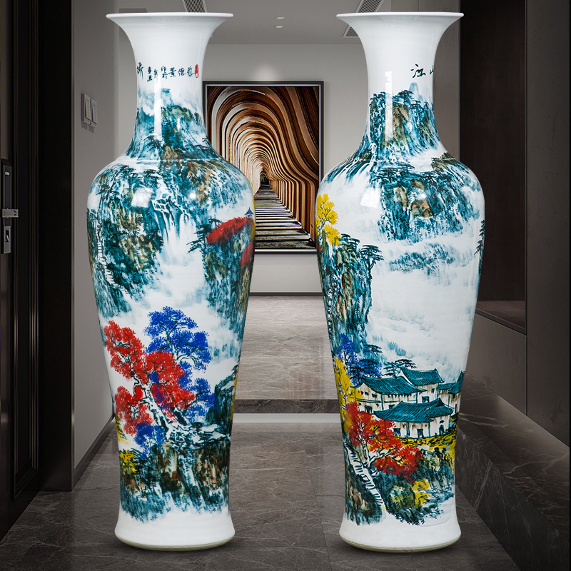 Jingdezhen ceramics hand-painted floor-to-ceiling large vase Chinese-style home living room porch hotel opening decoration large ornaments