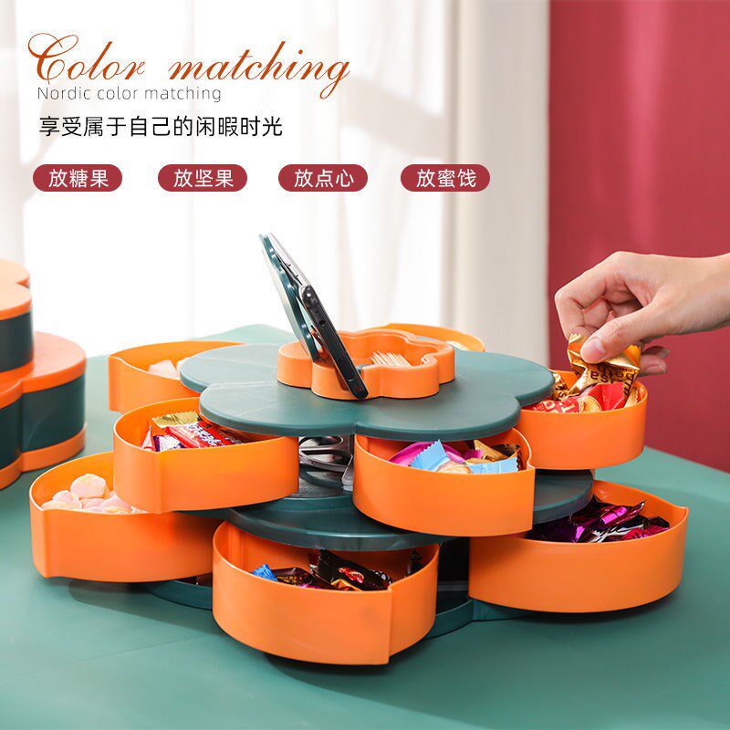 Korean flower-shaped fruit plate nut box rotating storage with lid candy box sealed dry fruit plate home multi-layer snack box