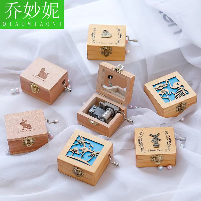 Wooden Hand Music Box Children's Christmas Gift diy Retro Music Box Primary School Girl Birthday Gift Male