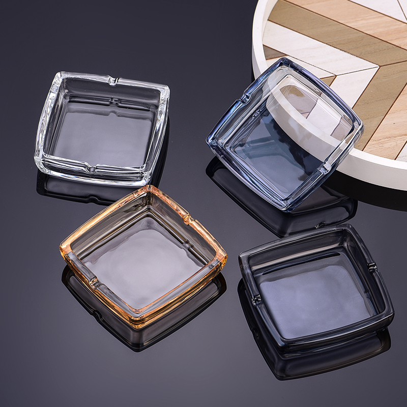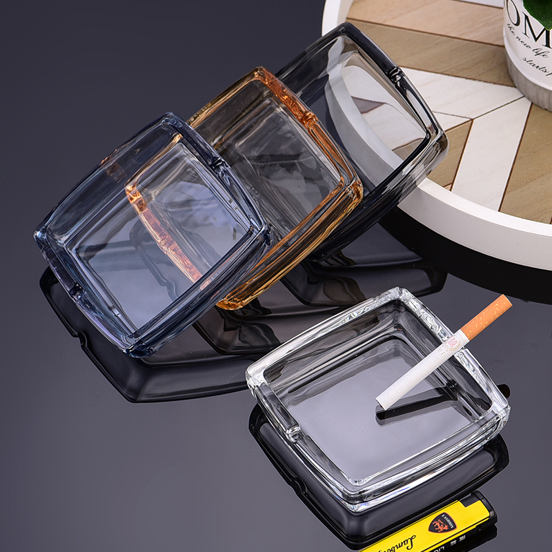 Glass Tobacco Ashtray Creative Minima Cigarette Hotel Room Square Shallow-cylinder Fashion European-style Living Room Office Small Number
