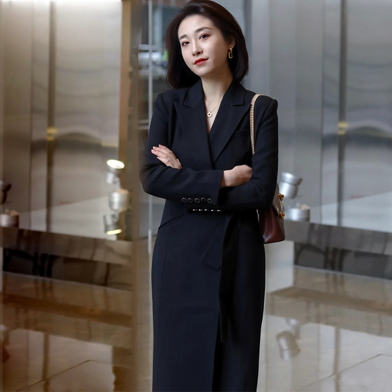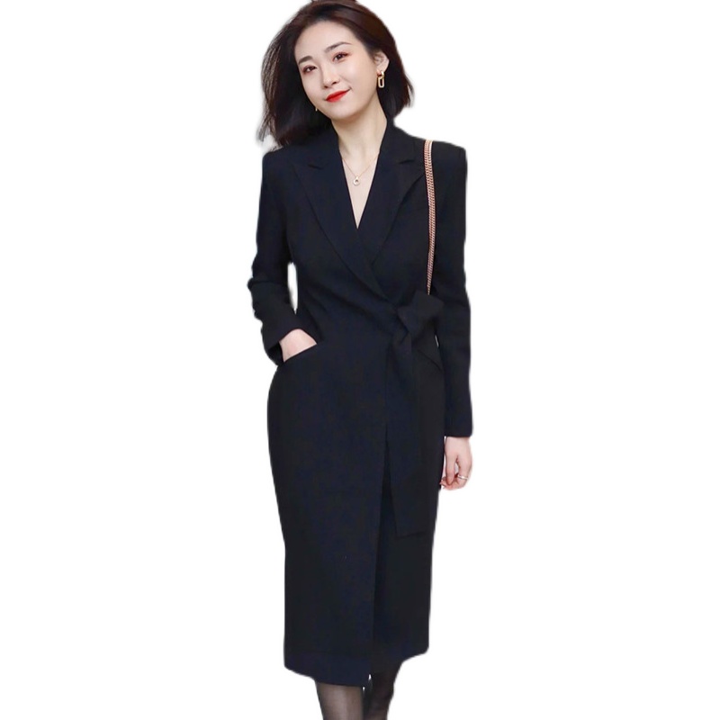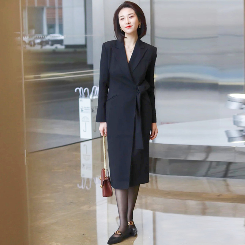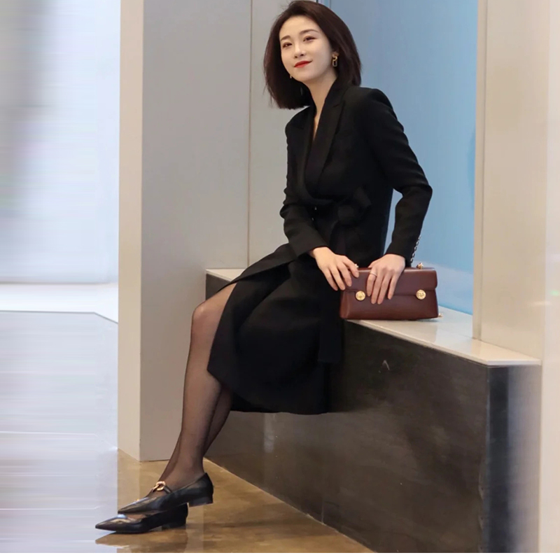 2022 autumn and winter high-end boutique black suit collar ol commuter dress fashion elegant slim slim suit skirt