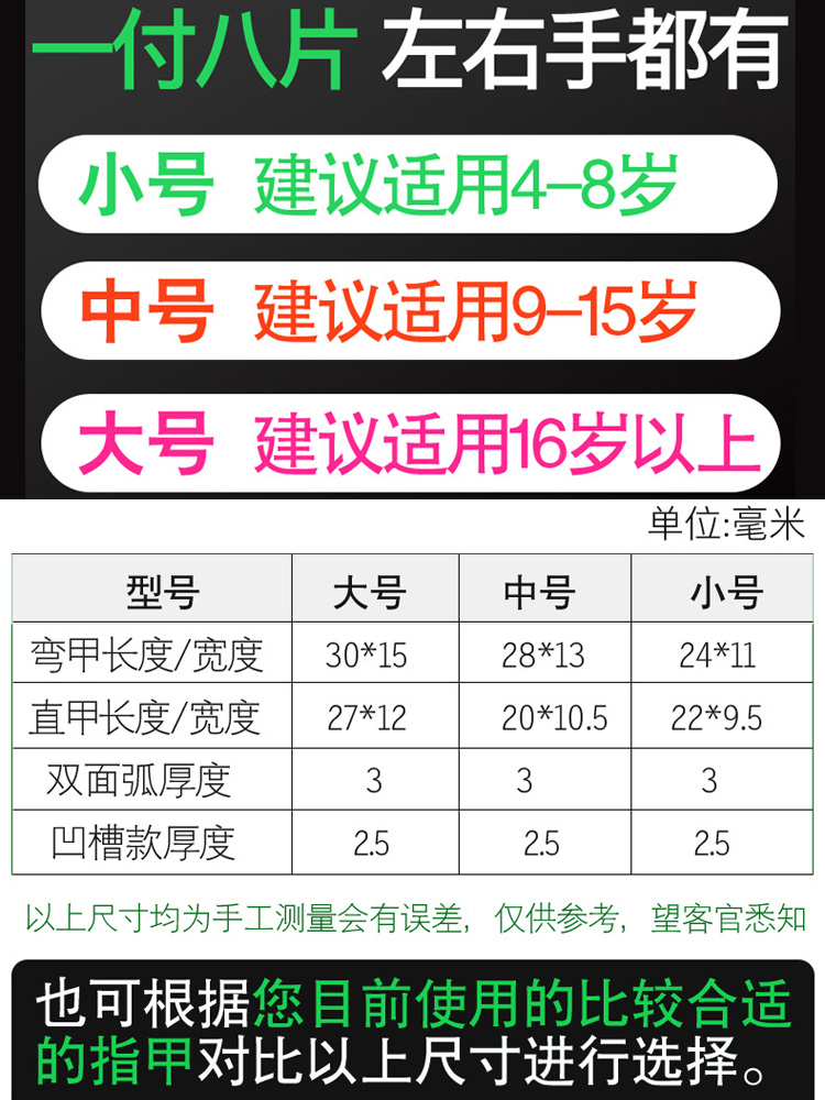 Large Double-sided arc (suitable for 16 years old)Medium Double-sided arc (suitable for 9-15 years old)Small Double-sided arc (suitable for 4-8 years old)Large groove (suitable for 4-8 years old)