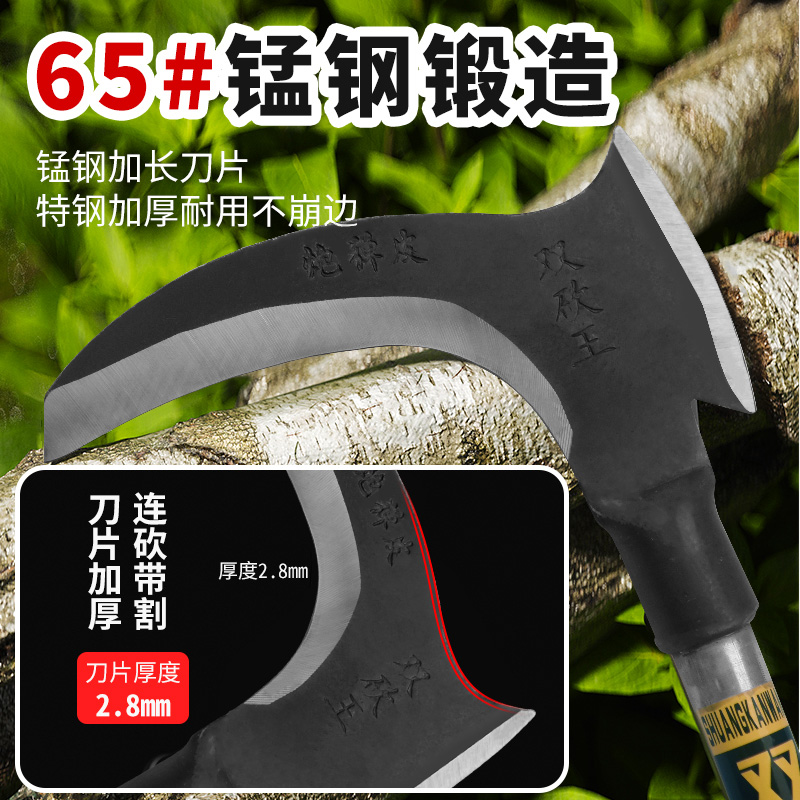 Large-length handle sickle agricultural machete cut grass weeding double chop multifunction stainless steel sickle head hook sickle with sickle knife