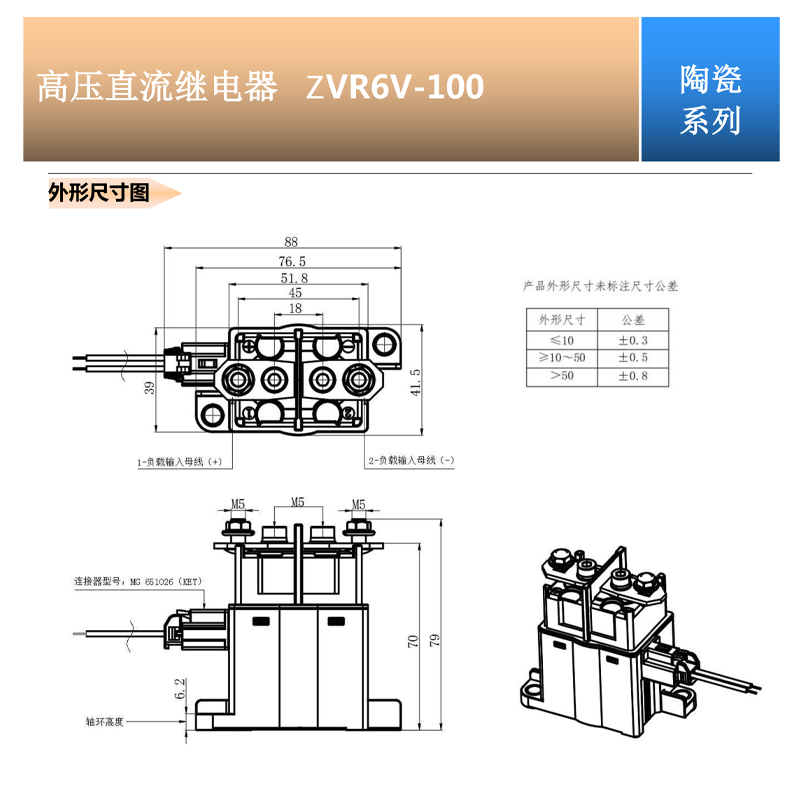High power high pressure DC contactor 100A relay 12V24V to control high voltage electric car charging pile