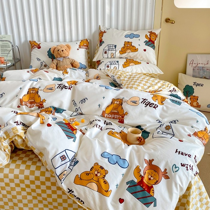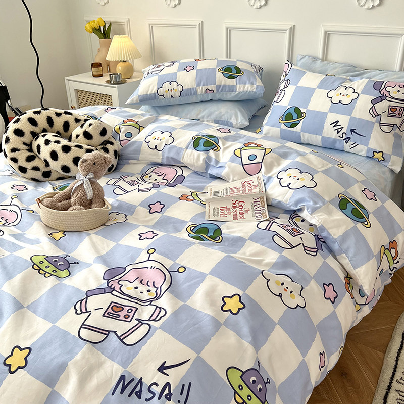ins cute cartoon bed four pieces of full cotton pure cotton quilt cover 0 9 1 2 1 1 35m students three sets of spring