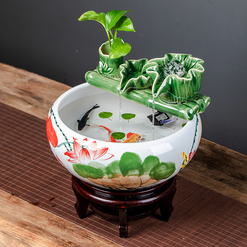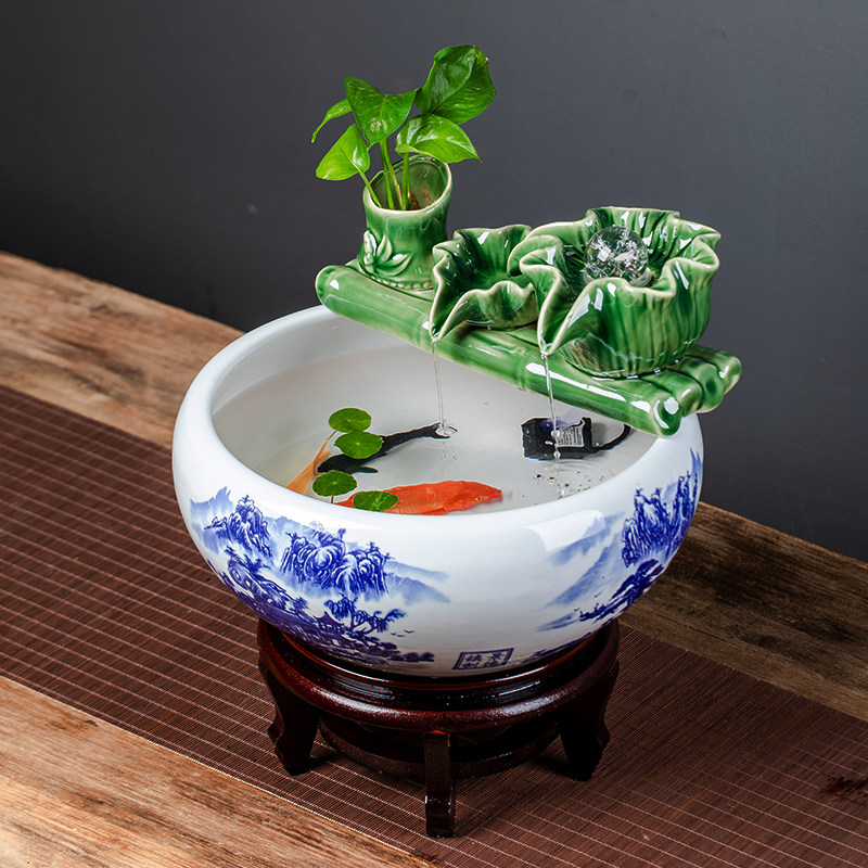 Jingdezhen Ceramics Flowing water swinging pieces Home Living room Small Merchants Circulation Flowing Water Fish Tank Table making Scenery Decorations