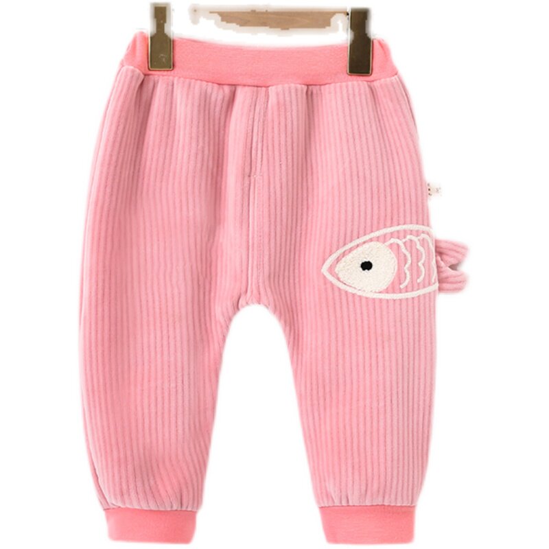 Infant children's autumn and winter plus velvet big PP pants baby harem pants sports pants boys and girls thickened big butt pants