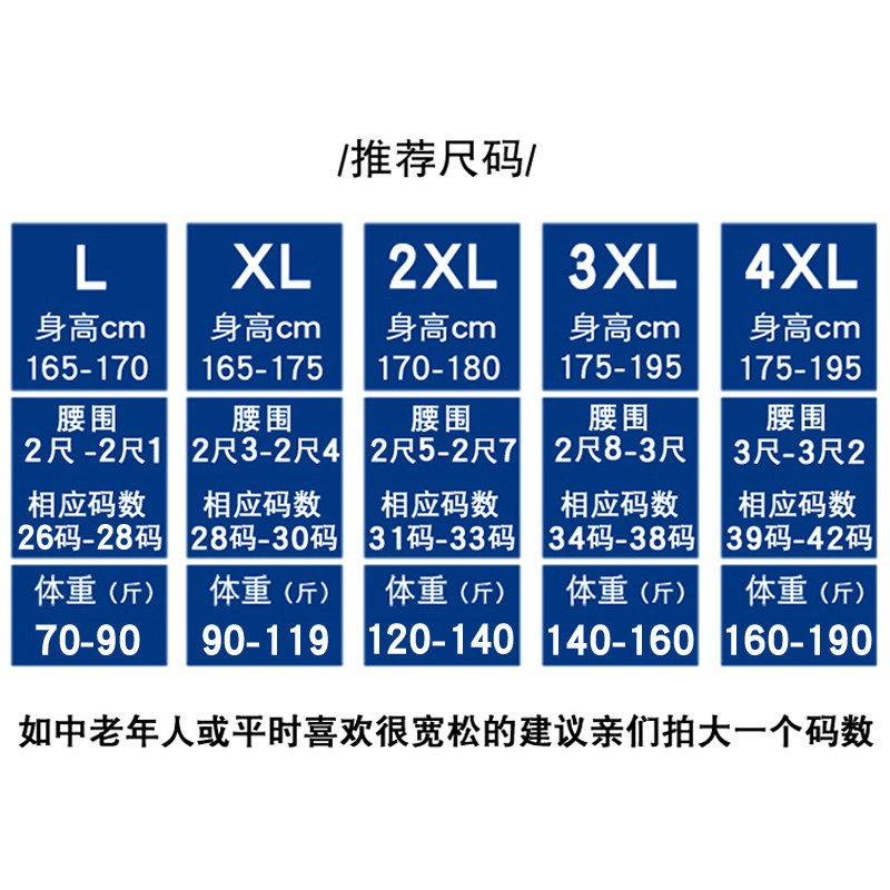 L (recommended 70-90 catty) XL (recommended 90-119 catty) 2XL (recommended 120-140 catty) 3XL (recommended 140-160 catty) 4XL (recommended