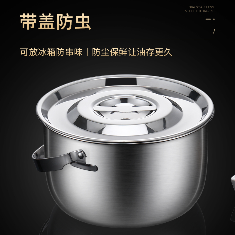 304 stainless steel Pig Oil Tank with lid Home Kitchen High Temperature Resistant Large Capacity Meat Oil Tank Oil Storage Tank Container