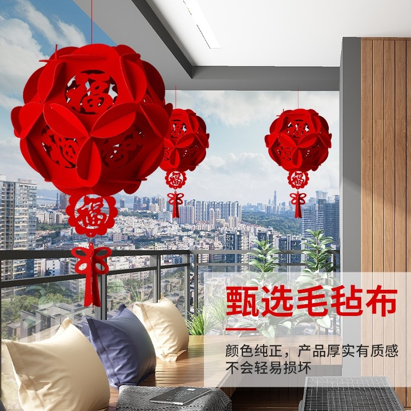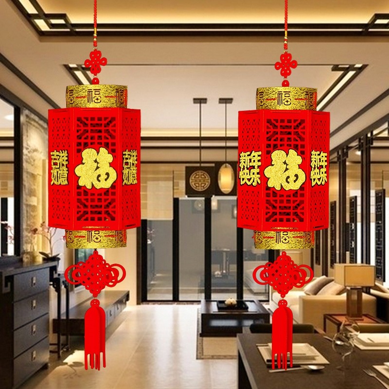 New Year's lantern palace lantern Spring Festival New Year's Day New Year's Eve hanging decorations large red fu characters small pendants unwoven cloth mall Supermarket Atmosphere Decorations