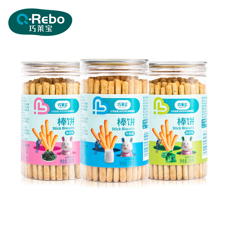 Qiaolaibao cake stick 150g canned milk seaweed vegetable flavor multi-flavored molar biscuit snacks non-fried