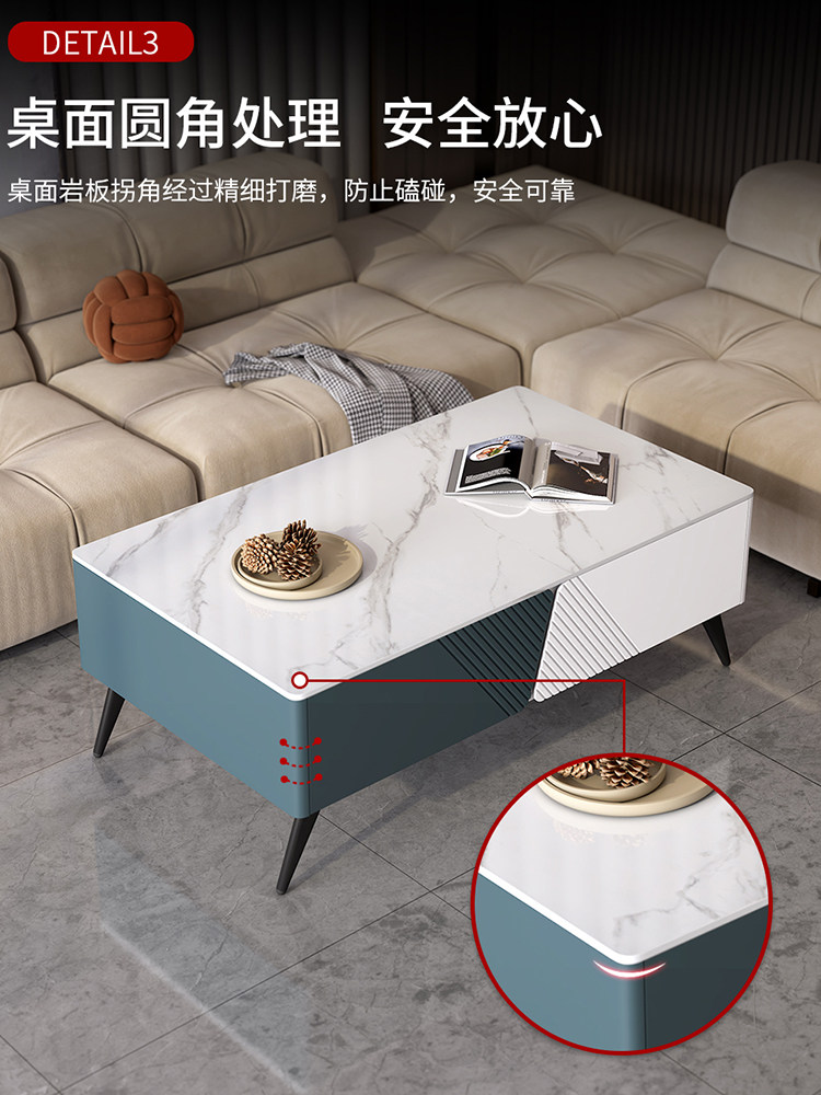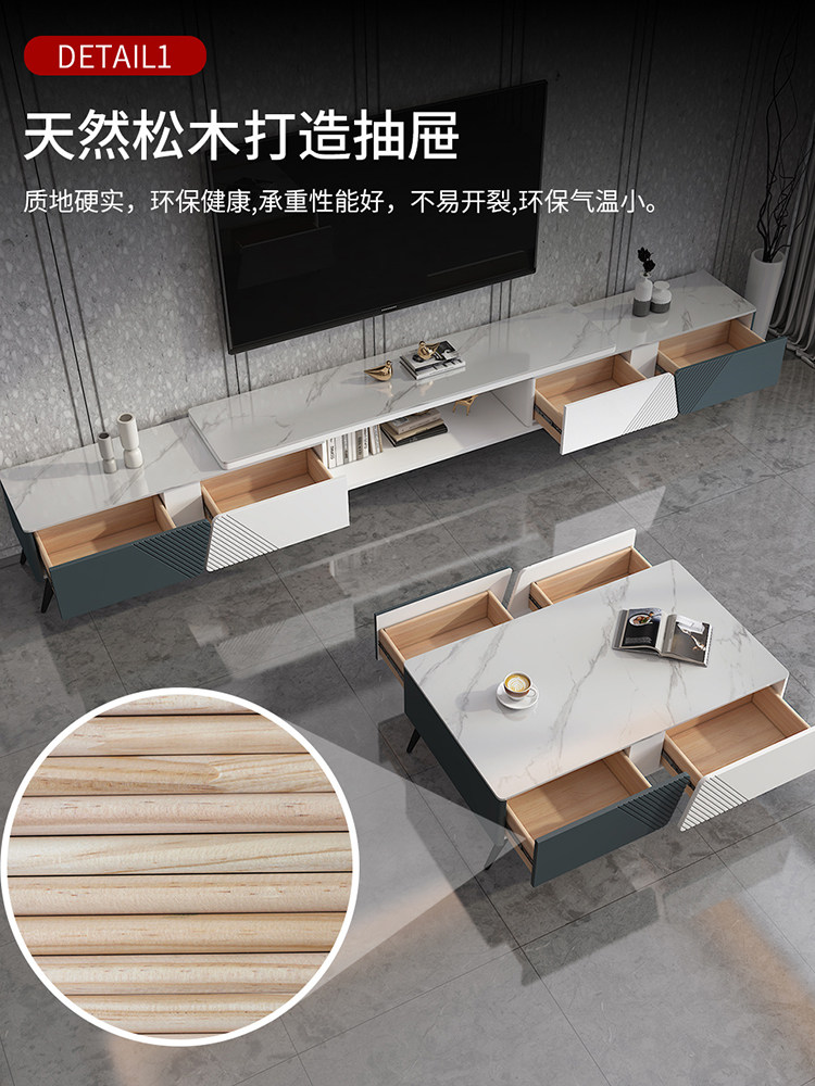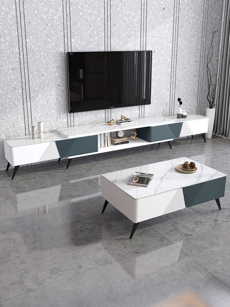 Fancy light extravagant small family style living room 2022 new telescopic rock plate tea table TV cabinet combined modern minimalist lockers