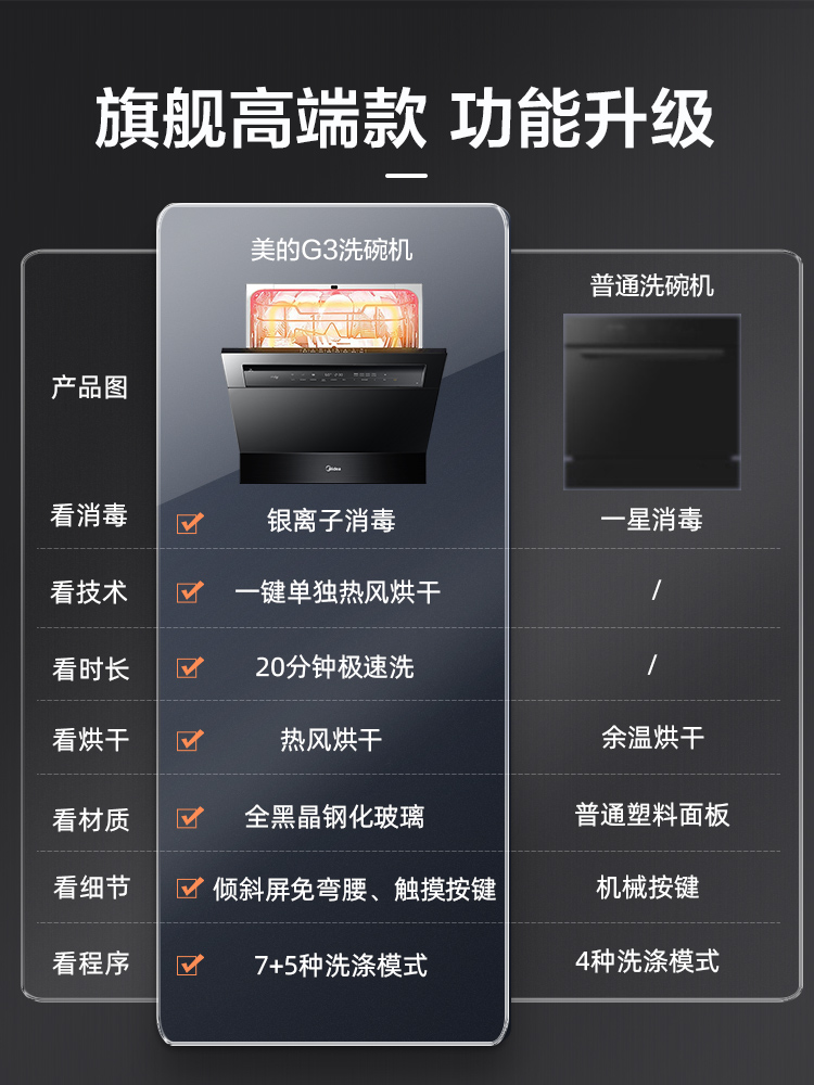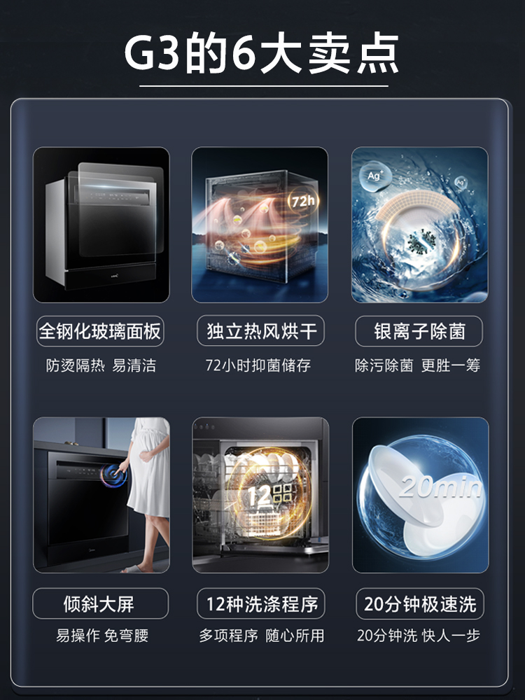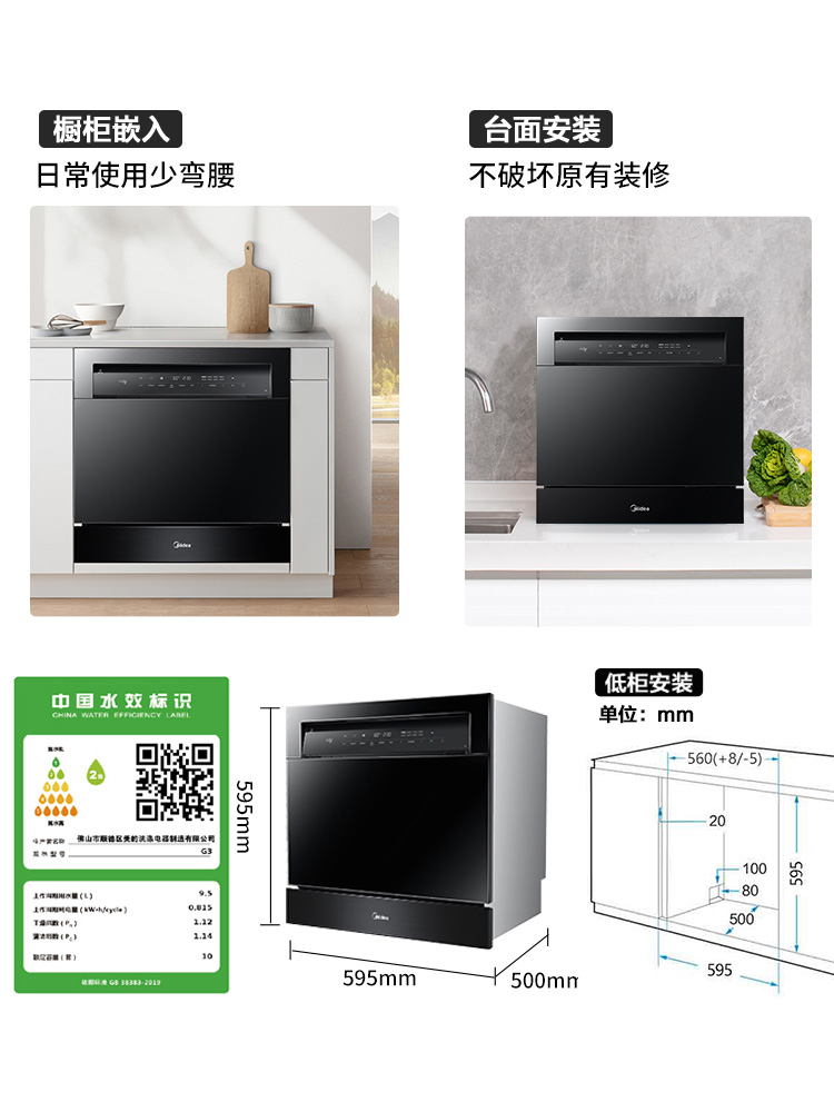 Midea dishwasher fully automatic household hot air drying dishwasher embedded desktop 10 sets of upgraded G3