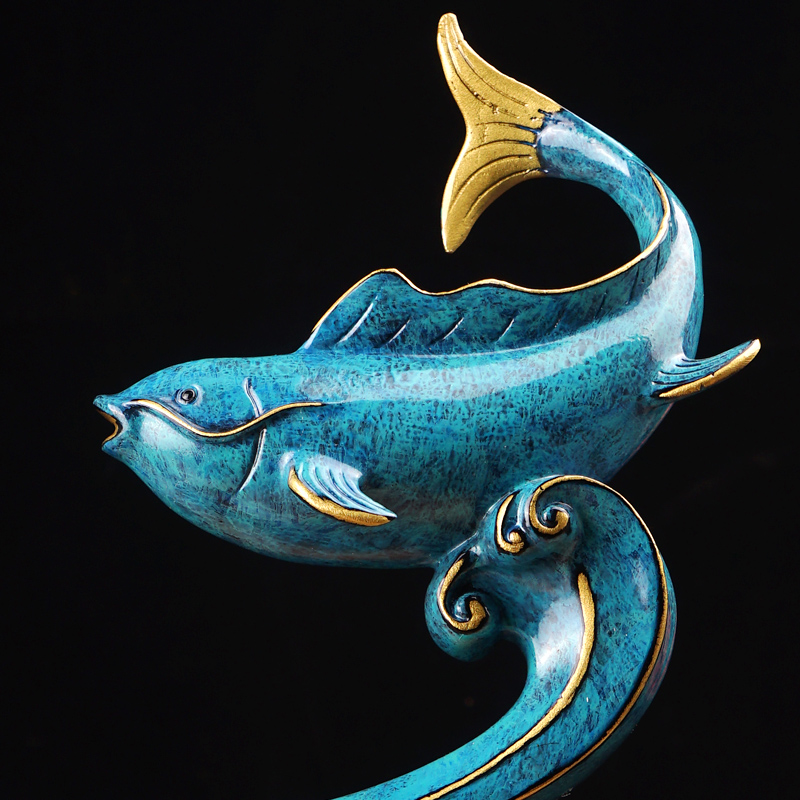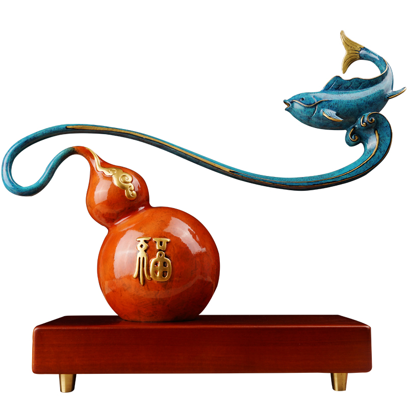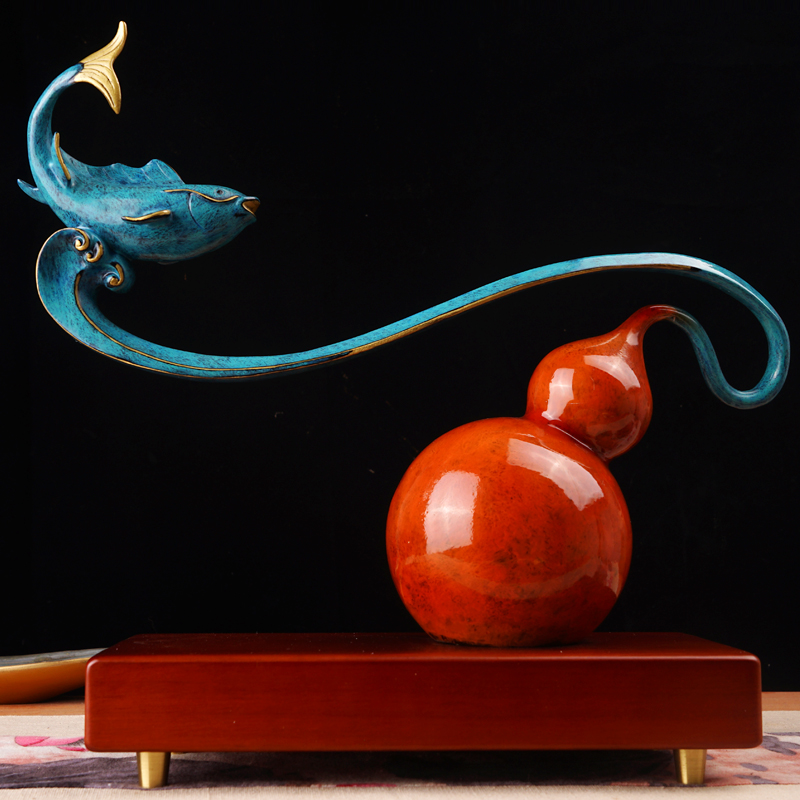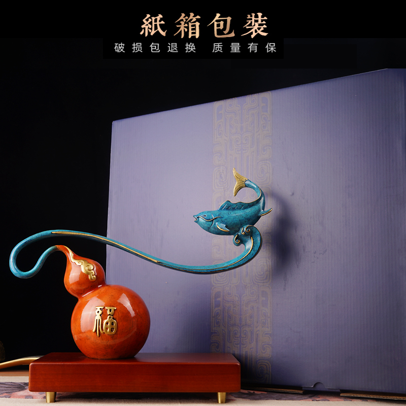 Copper gourd ornaments Fulu Yuyu living room porch wine cabinet decorations new Chinese-style high-end housewarming gifts