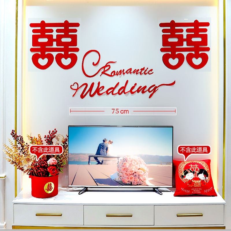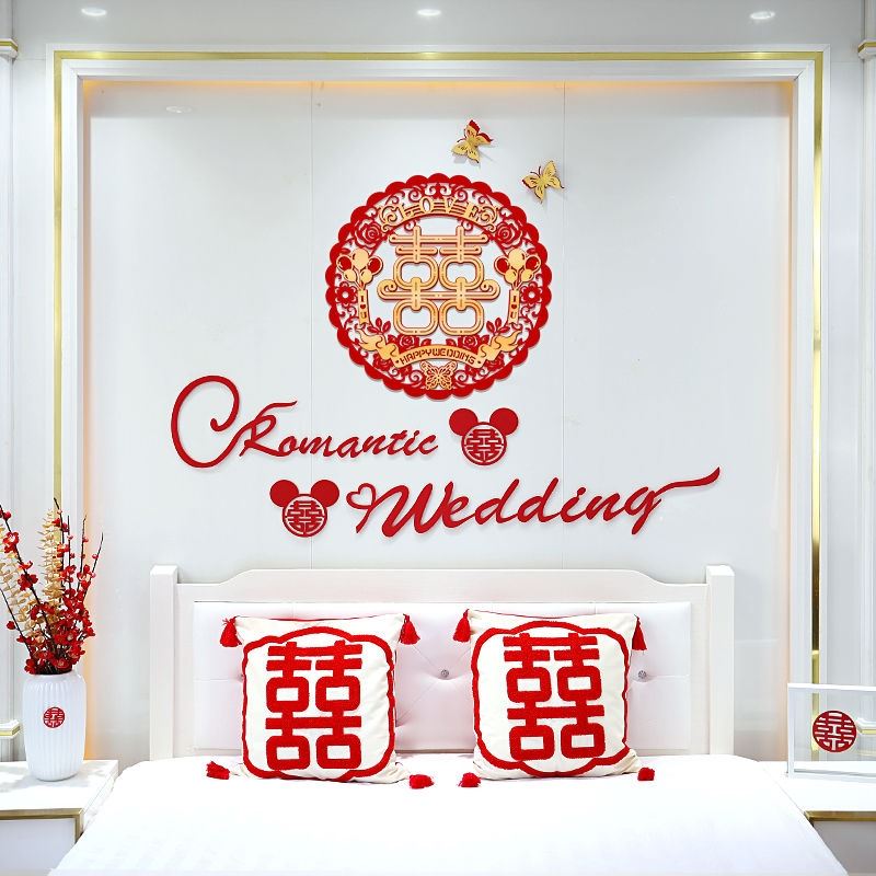 Wedding House Arrangement Ins Wind Creativity Romantic Background Wall Decoration Women's New Room Bedroom Stickers Simple And Generous
