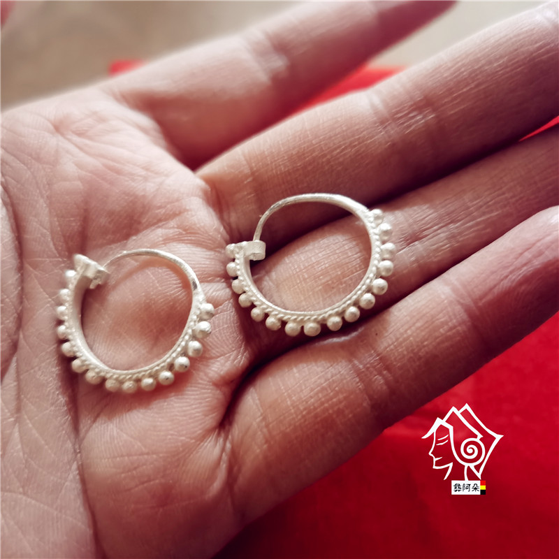 Liangshan Yi ethnic earrings female pure silver pure handmade small bump temperament brief individuality retro minority wind silver decoration